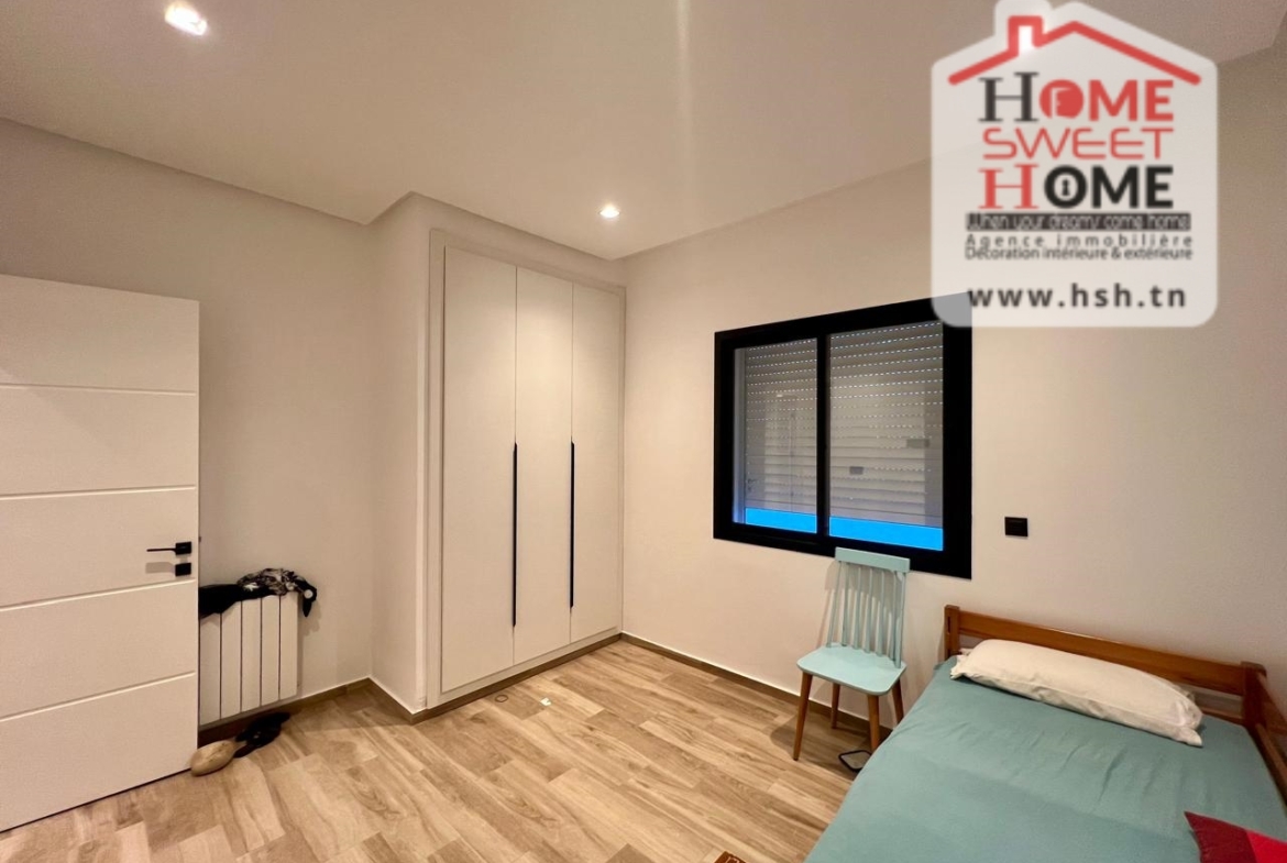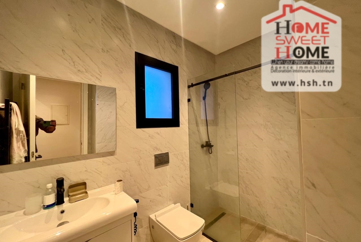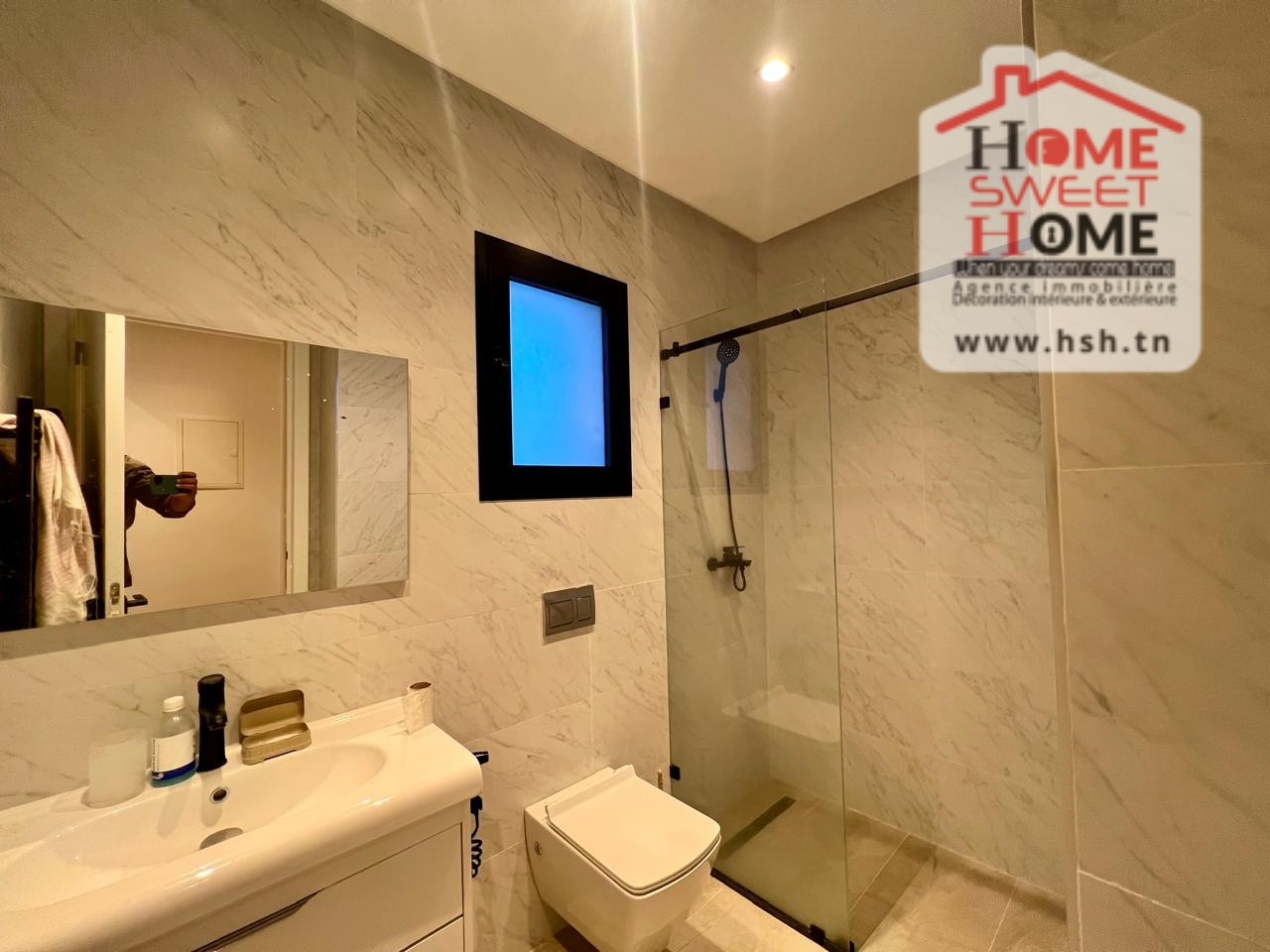 Un appart Haut standing au 2éme étage situé aux Jardins De Carthage. A l'entrée, sur un salon, une cuisine équipée avec séchoir, une chambre à coucher et une salle de bain. A l'extérieur, sur un abri de voiture.