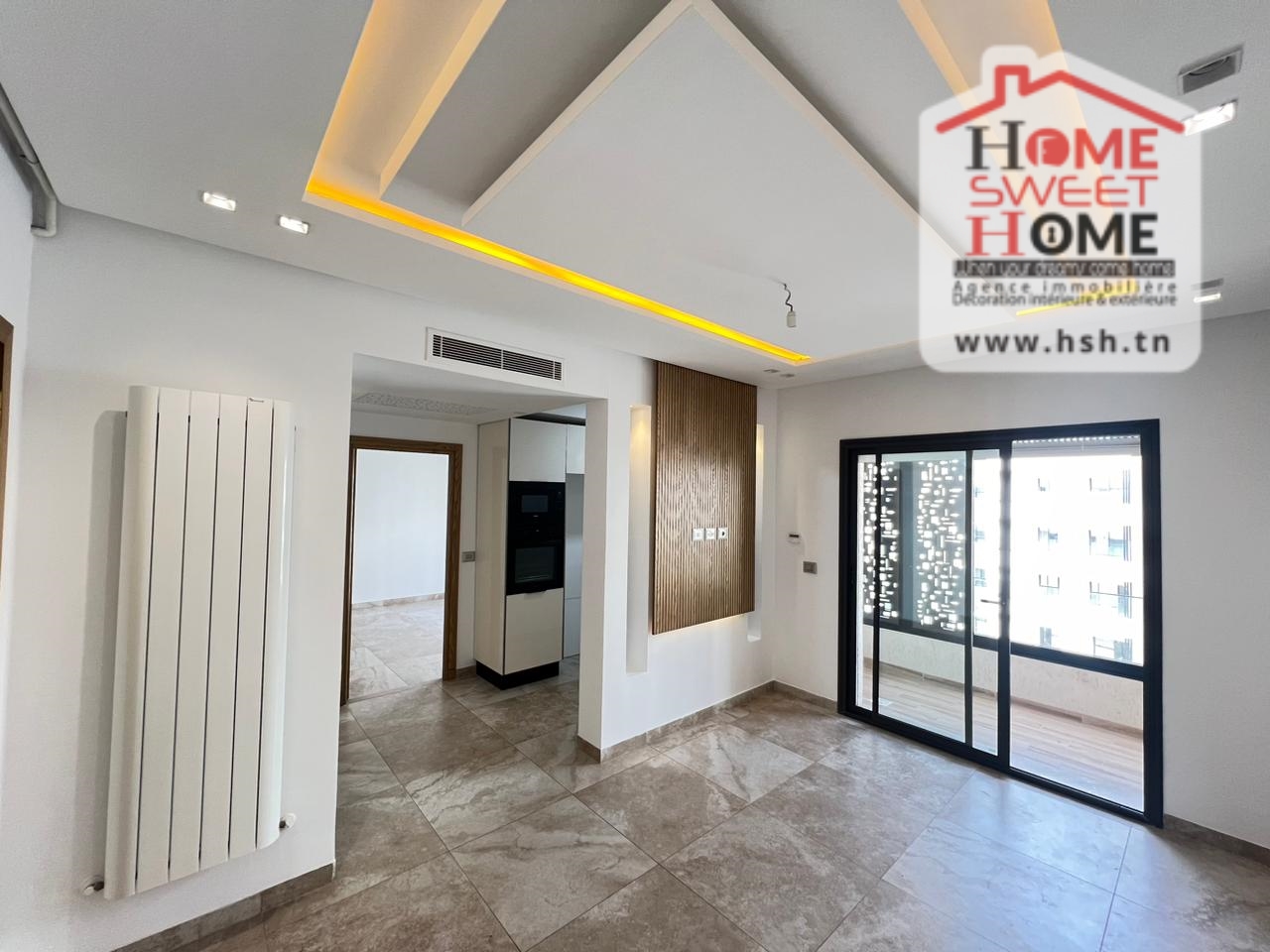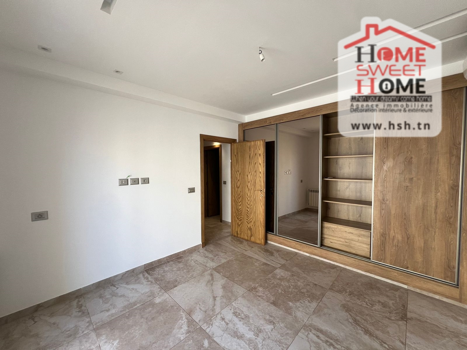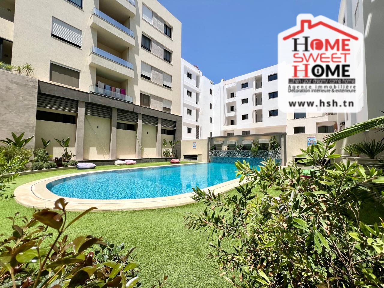 Un Appart au 3éme étage dans une résidence de haut standing avec piscine et ascenseur situé à Ain Zaghouan Nord. A l'entrée, sur un salon avec balcon, une cuisine équipée, une chambre à coucher avec balcon et une salle de bain. A l'extérieur, sur une place de parking au sous-sol