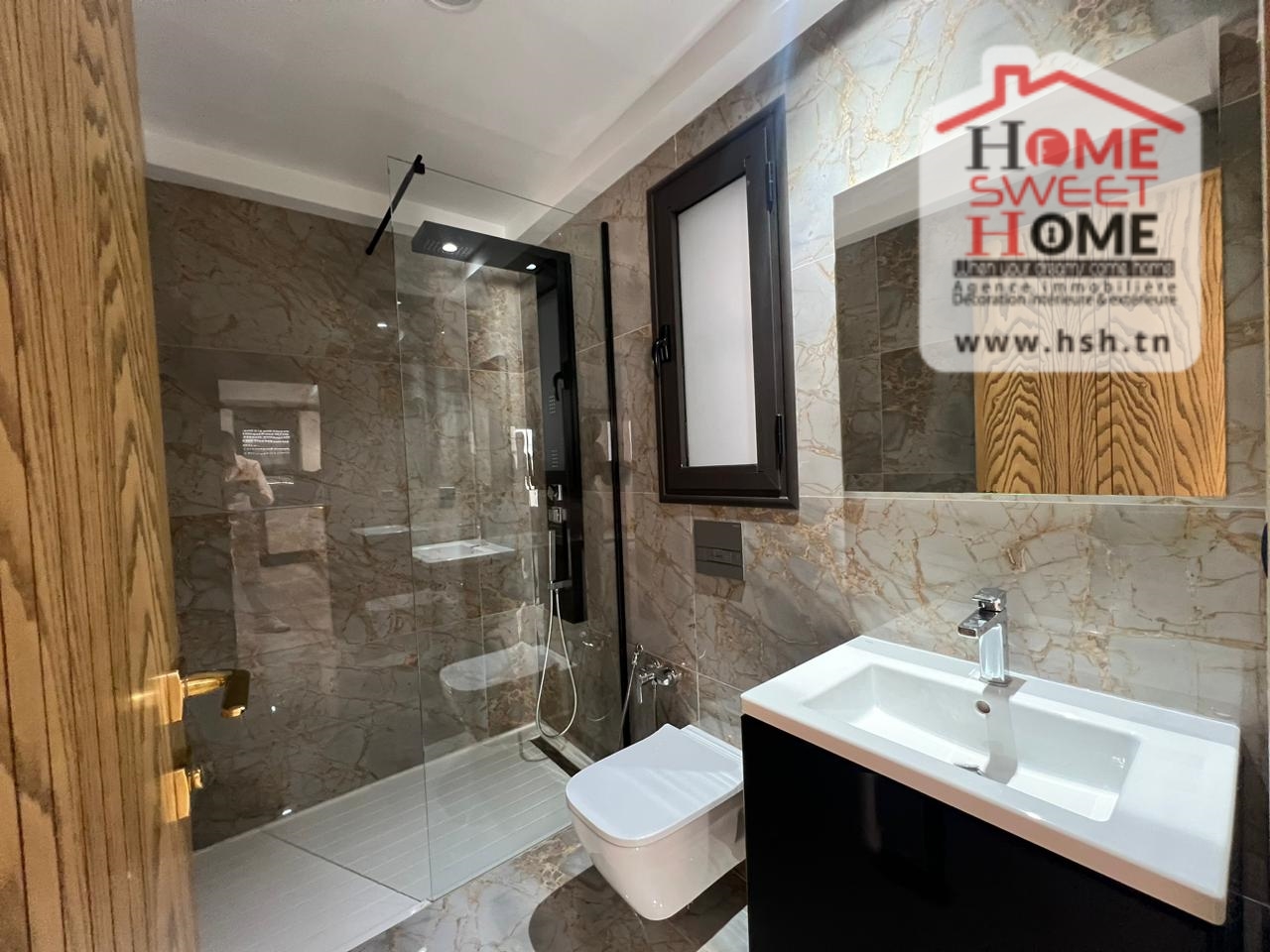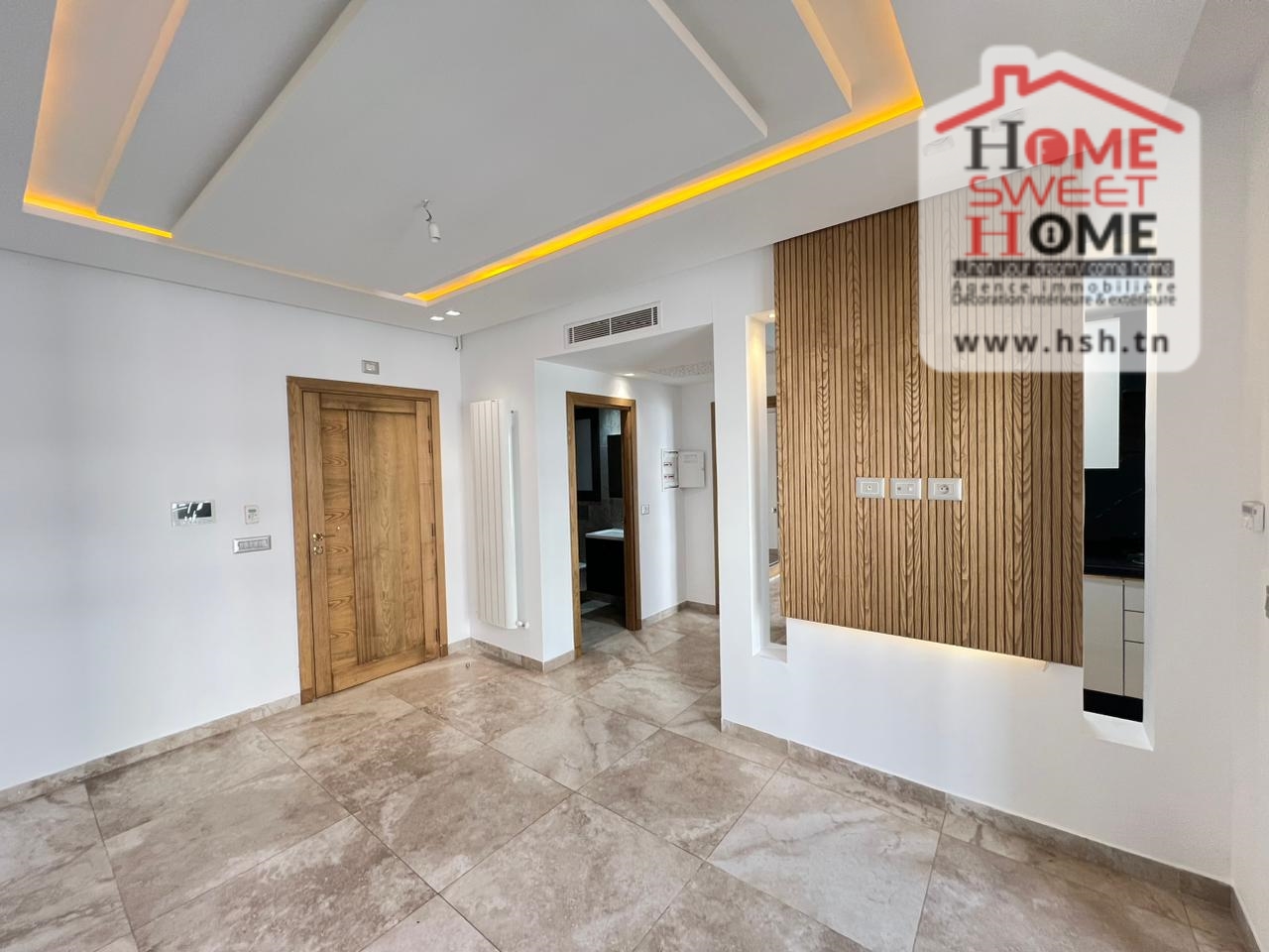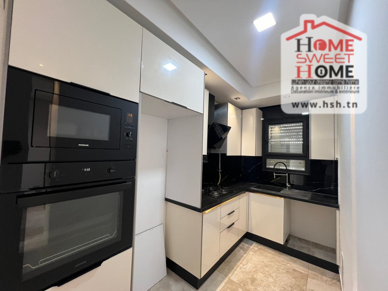 Un Appart au 3éme étage dans une résidence de haut standing avec piscine et ascenseur situé à Ain Zaghouan Nord. A l'entrée, sur un salon avec balcon, une cuisine équipée, une chambre à coucher avec balcon et une salle de bain. A l'extérieur, sur une place de parking au sous-sol