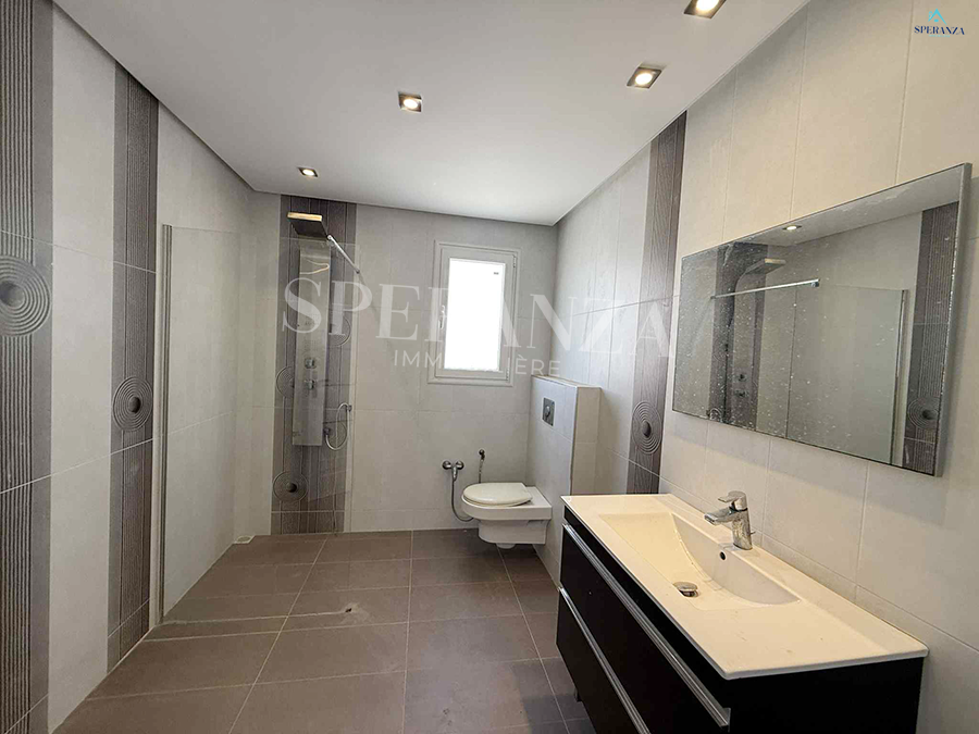Speranza immobilière Hammamet vous propose à la location annuelle. Cet appartement meublé au 2éme étage situé à Nabeul dans un quartier calme et sécurisé. L'entrée principale possède un salon lumineux,une cuisine bien équipée et aménagée avec des espaces de rangement. La partie nuit se compose de trois chambres à coucher qui partagent une salle d'eau. Ainsi qu'une terrasse vue sur mer .