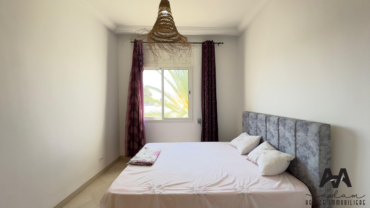 ADAM Agence Immobilière vous propose un charmant appartement S+1 meublé, situé dans une résidence sécurisée avec trois piscines collectives, à seulement 2 minutes à pied de la plage, idéal pour une location 9 mois.