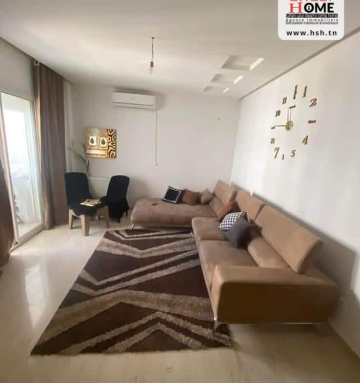 Un appartement richement meublé au 3 éme étage situé dans une résidence avec ascenseur à EL Mourouj 6. A L'entrée, Sur un salon avec balcon, une cuisine équipée avec séchoir, 2 chambres et une salle de bain. Cet appart dispose du chauffage central, des climatiseurs et d'une place de parking au sous-sol.