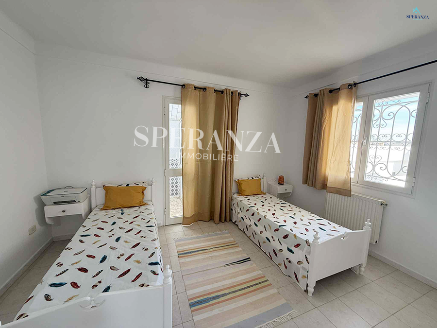 Speranza immobilière Hammamet vous propose à la location annuelle cet appartement au premier étage situé à Hammamet centre , il est proche de toutes les commodités .Il se compose par un salon lumineux , une cuisine équipée avec divers éléments de rangements, deux chambres à coucher et une salle d'eau .
