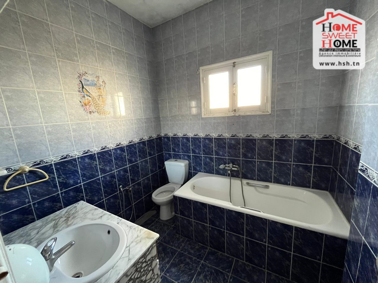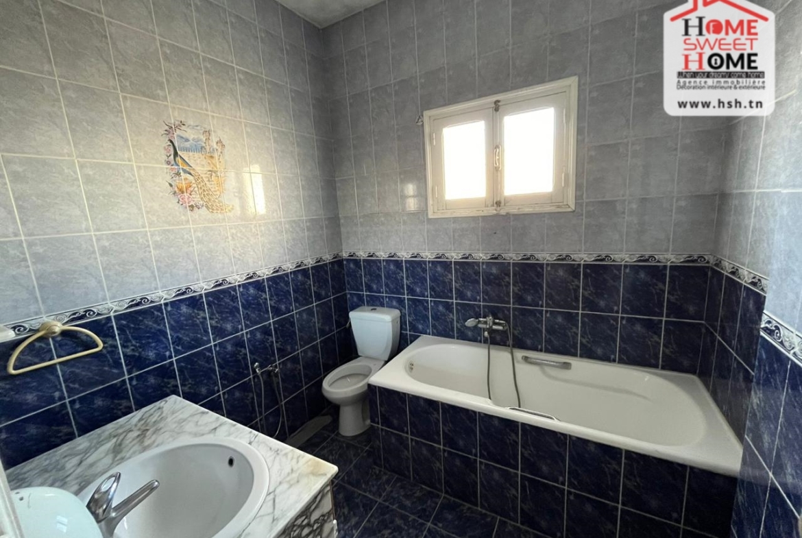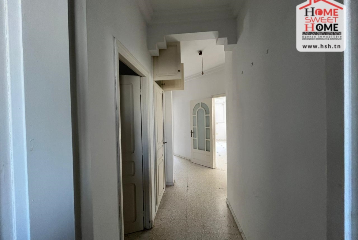 Un étage de villa avec une entrée indépendante situé dans un quartier résidentiel à La Marsa. A L'entrée, On a un salon, salle à manger, une cuisine, 3 chambres et une salle de bain. A L'extérieur, Sur un abris de voiture.