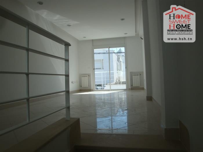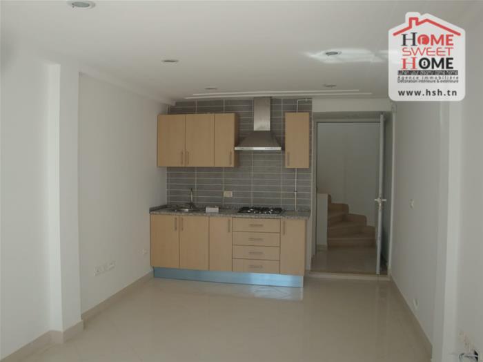 Un loft situé à la Marsa. Il comprend un salon, une kitchenette, une cuisine et une salle de bain. NB : Equipé d'un chauffage central.