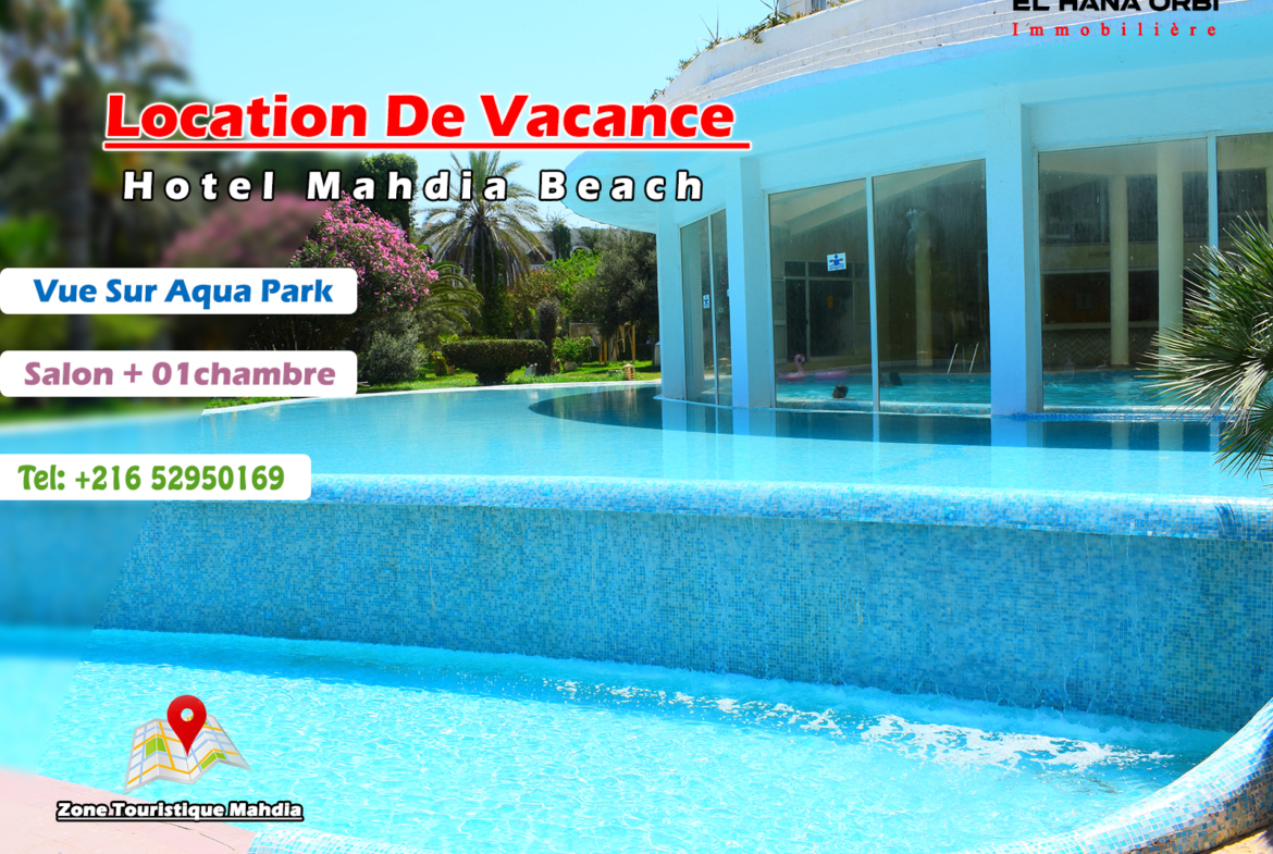 ? vous proposez à #louer verser #vacances d'été un appartement? s+1 haut standing vue sur mer ,mis au 4 éme étage à hôtel mahdia beach ?? #plage de zone touristique mahdia ; cet appartement est bien meublé et climatisé et contient :