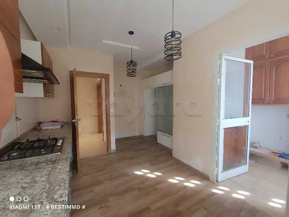 a louer un grand s+3 à cité el ghazela situé dans une résidence en r+2 et au deuxième étage il est composé d'un hall d'entrée ,un salon salle à manger trois chambres a coucher une salle d'eau une salle de bain et une cuisine équipée.