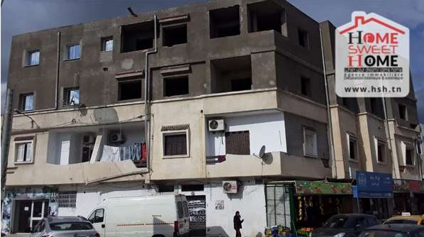 Un immeuble situé à Cité Essalama, EL Aouina. Au RDC, Sur deux locaux. Au 1er étage, Sur un appartement S 4 qui se compose par un salon, une cuisine, 4 chambres et une salle de bain. Au 2 éme étage, Sur deux appartements inachevés.