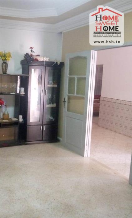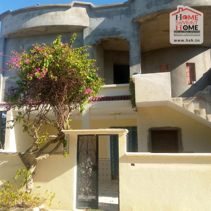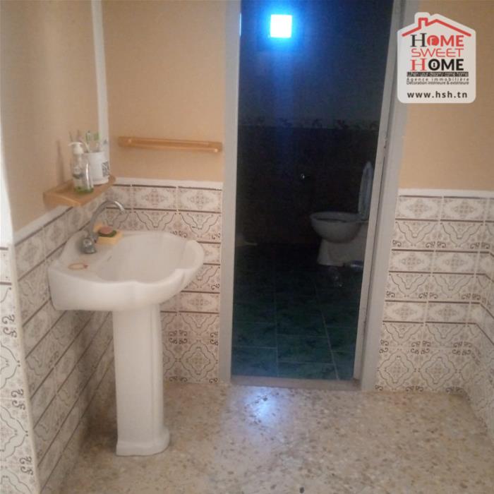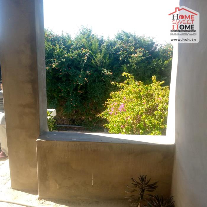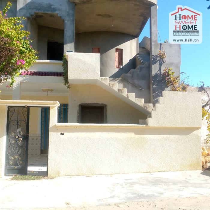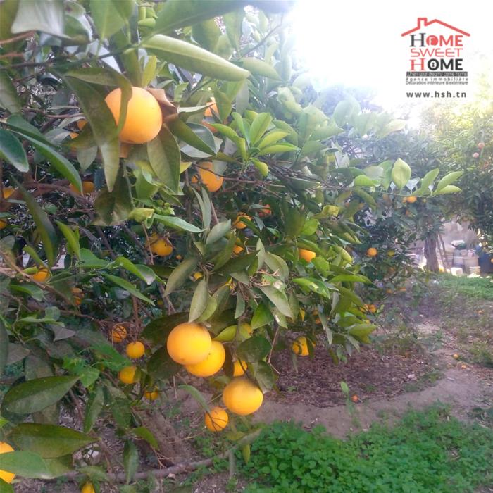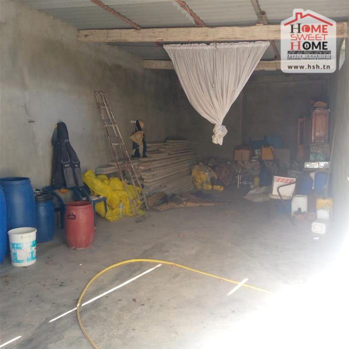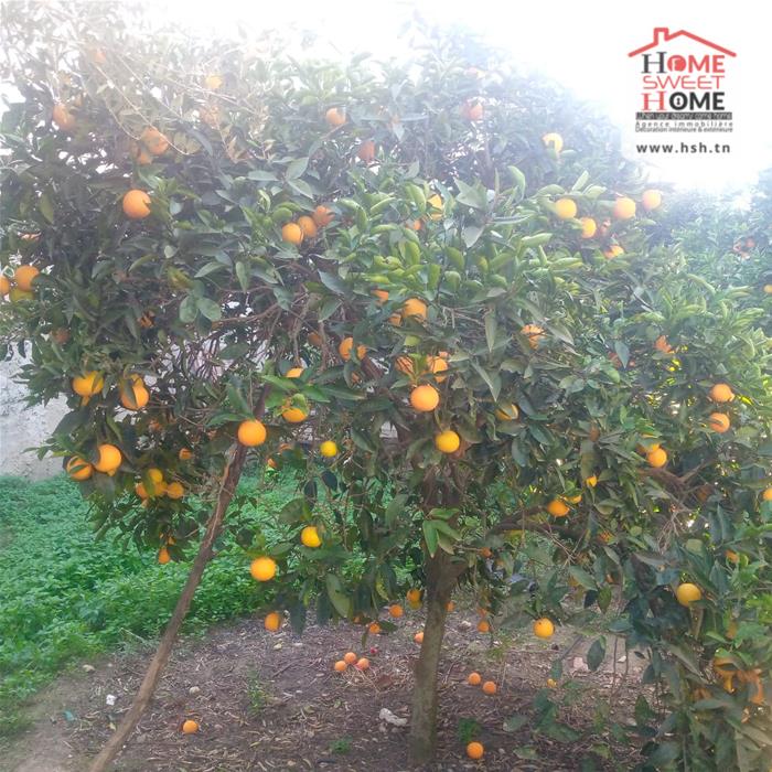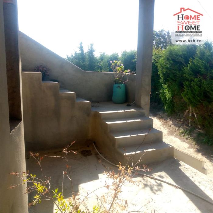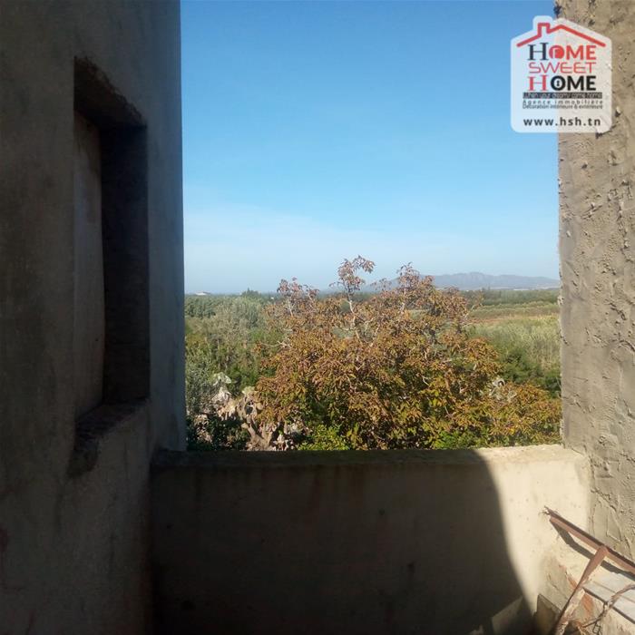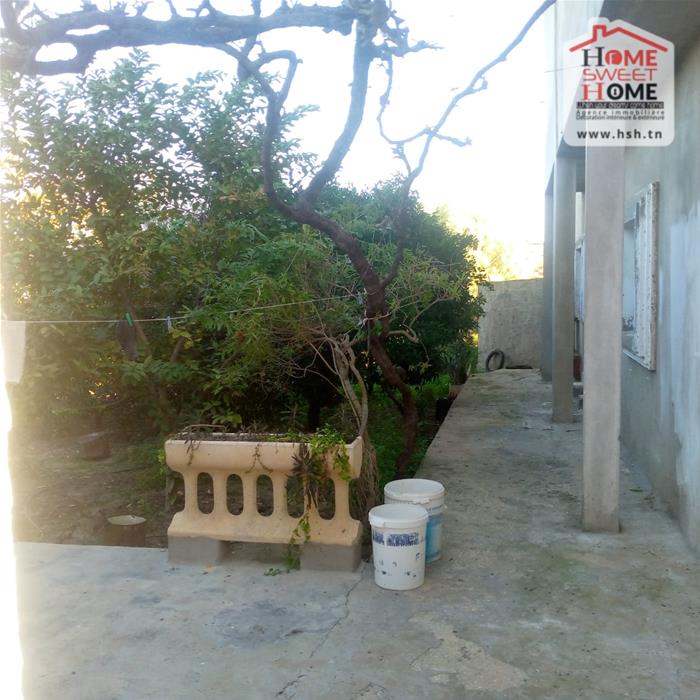 Immeuble sur un terrain d'une superficie de 1300m², situé à Menzel Bouzelfa. Au RDC on trouve un salon, une cuisine, 2 chambres et une salle d'eau. Le 1er étage est un S2 inachevé. A l'extérieur on trouve un garage spacieux et un très grand jardin avec plus de 50 arbres, principalement des oliviers et des orangers.