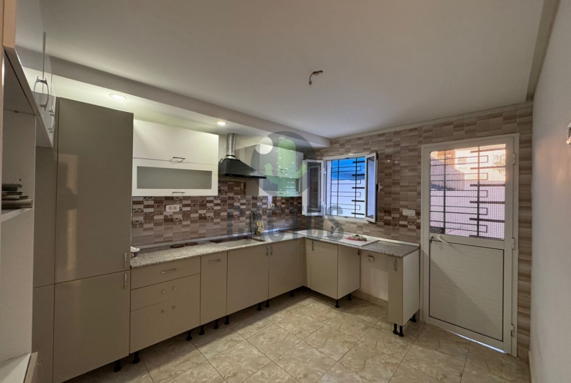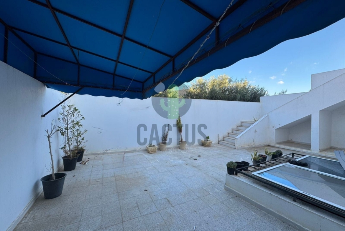 Cette villa située sur deux niveaux séparés se dresse au milieu d'un terrain de 200m² et dont la superficie bâtie est de 180m², au cœur d'un quartier calme et résidentiel à Mrezga,Hammamet. la villa se compose comme suit : au rez de chaussée on trouve un spacieux salon lumineux ainsi qu'une cuisine indépendante bien équipée complétée par un séchoir . En avançant dans le couloir on trouve la partie nuit qui couvre trois chambres à coucher nanties des dressings qui se partagent une salle de douche. Quant au 1er niveau on trouve un appartement S+2. Le hall d'entrée dessert un spacieux salon lumineux ainsi qu'une cuisine indépendante moderne bien équipée. En avançant dans le couloir on trouve la partie nuit qui couvre deux chambres à coucher nanties des dressings qui se partagent une salle de douche