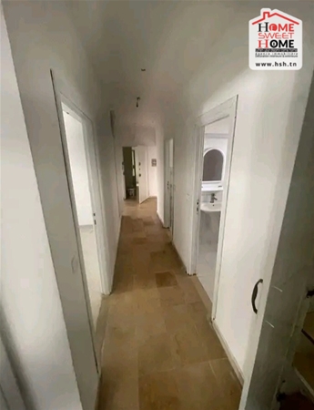 Un appart S3 au RDC situé dans une résidence près de l'école américaine à L'Aouina. A l'entrée, sur un salon avec balcon, une cuisine équipée avec séchoir, une salle d'eau pour les invités, 3 chambres à coucher et une salle de bain.