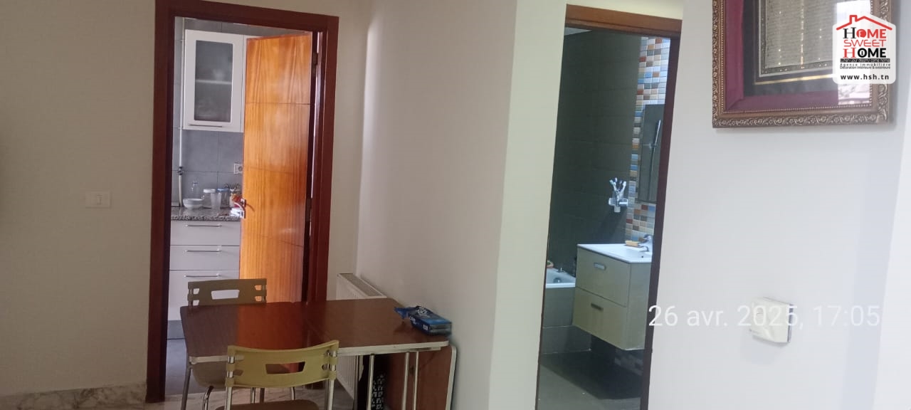 Un Appart S2 d'une superficie de 91 m² , situé au 3 éme étage dans une résidence à l'Aéroport . À l'entrée, on trouve un salon, une cuisine avec séchoir, 2 chambres et une salle de bain. Pour tous les renseignements, Contacter l'agent sur le 54670670.