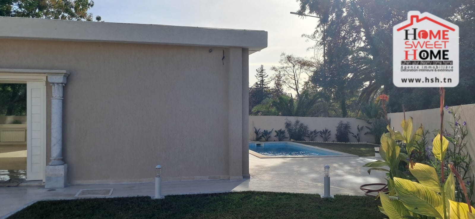 Une villa de plain pied avec une vue sur la colline de Carthage sur un terrain de 486 m² située dans un quartier résidentiel très prisé à Carthage Hannibal. A L'entrée, Sur un salon, une cuisine équipée, une salle d'eau pour les invités et 2 suites parentales. A L'extérieur, Sur une terrasse, un jardin, une piscine et un abris de voiture.