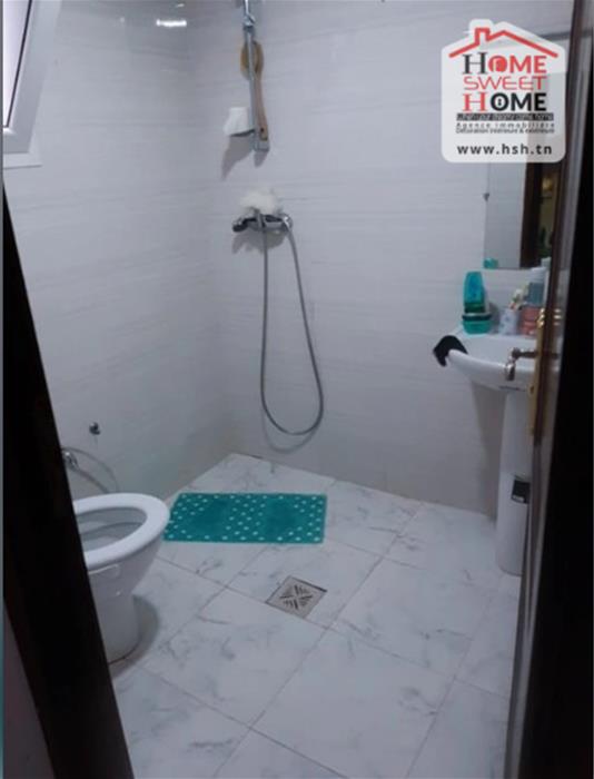 Villa sur un terrain de 230m², située à Manouba avec deux accès sur deux rues. Elle se compose au RDC d'un salon, d'une chambre, d'une cuisine et d'une salle d'eau. Au 1er étage on trouve un salon, 2 chambres et une salle de bain. Le 2ème étage comprend un studio composé d'un salon et d'une cuisine. A l'extérieur on trouve un abri de voiture et un petit jardin.