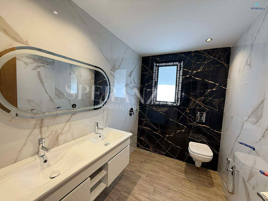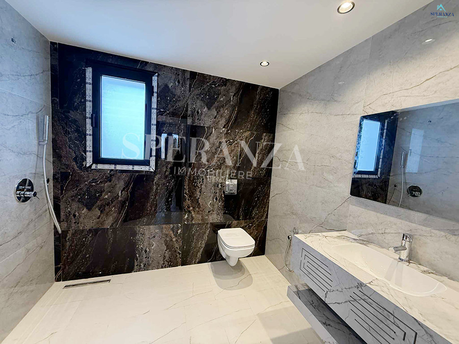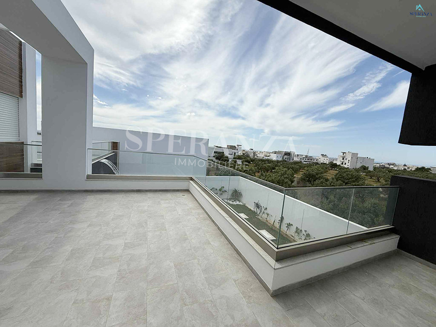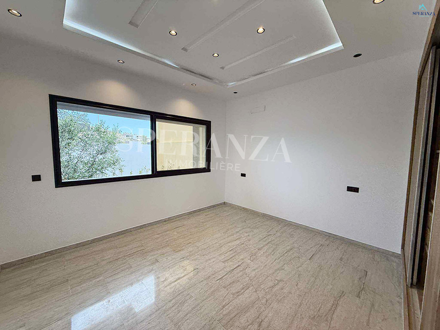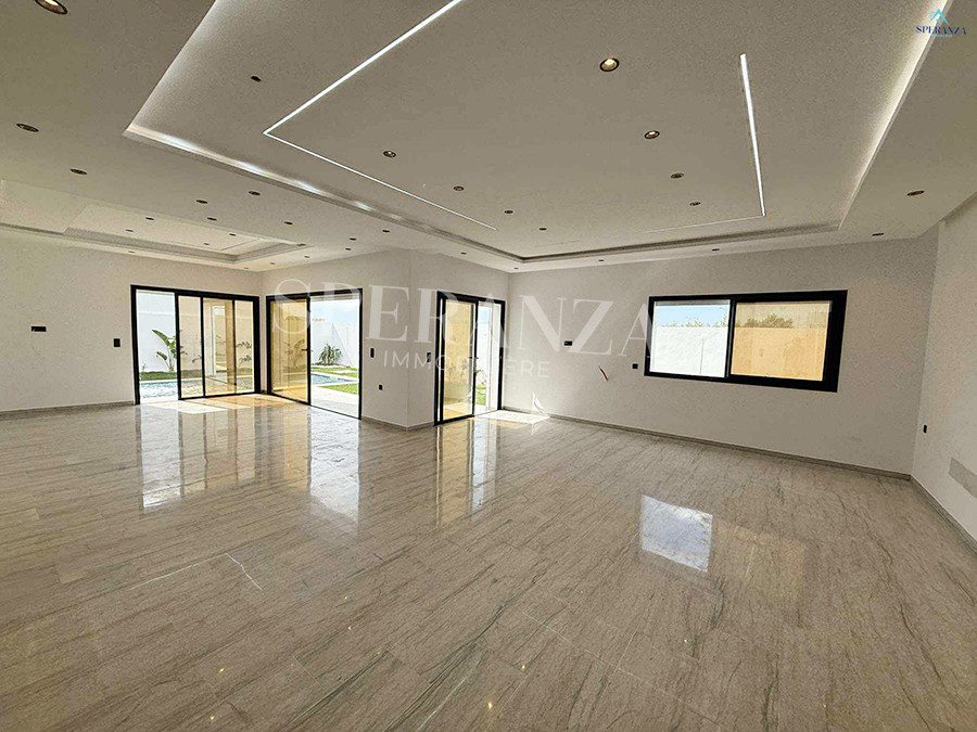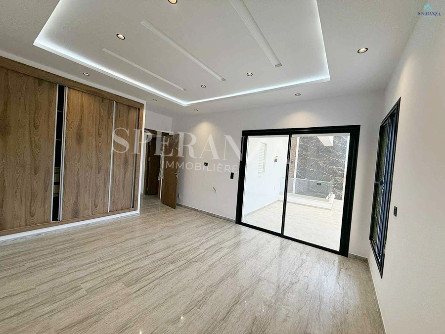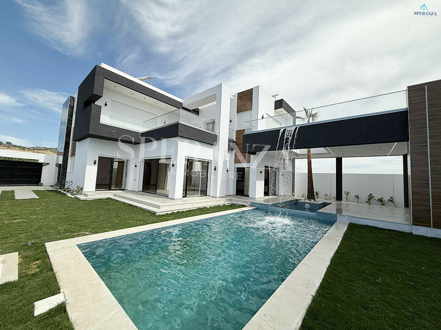 Speranza immobilière vous propose à la vente Cette villa style moderne située à Hammamet nord . L'entrée principale bénéficie d'un jardin gazonné qui offre plusieurs espaces, une piscine. Au rez de chausser se trouve un salon lumineux grâce à ses fenêtres qui offrent une vue sur le jardin,une cuisine aménagée avec des espaces de rangement ,une chambre à coucher ,une salle d'eau pour les invités. Un escalier nous mène vers le 1er étage qui se compose d'une suite parentale et de deux chambres à coucher, une terrasse vue des mers. Et un garage pour la voiture.