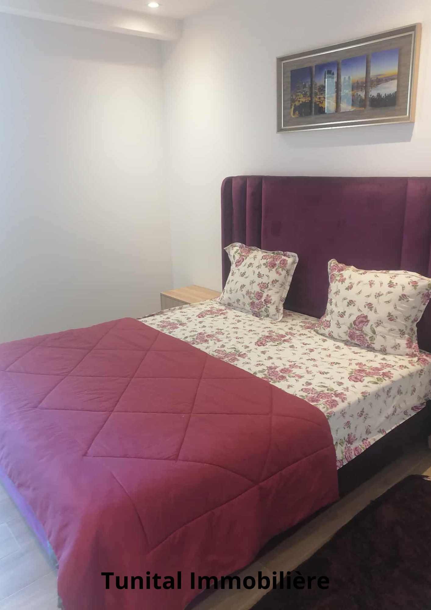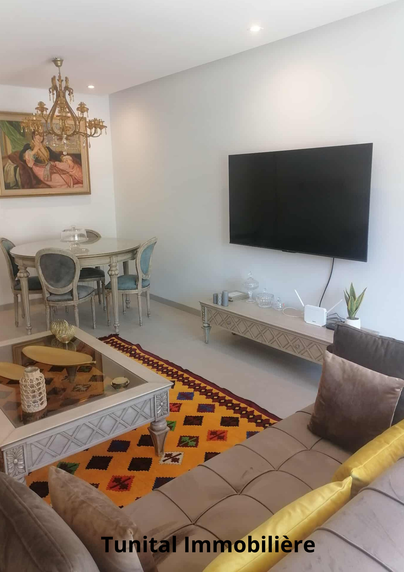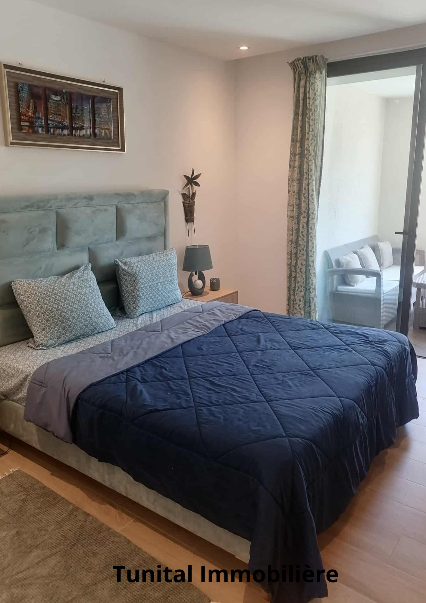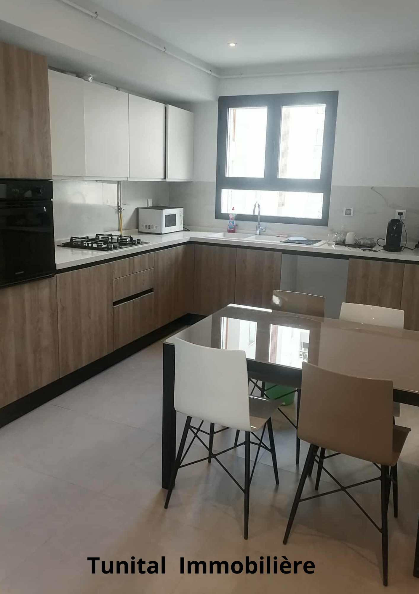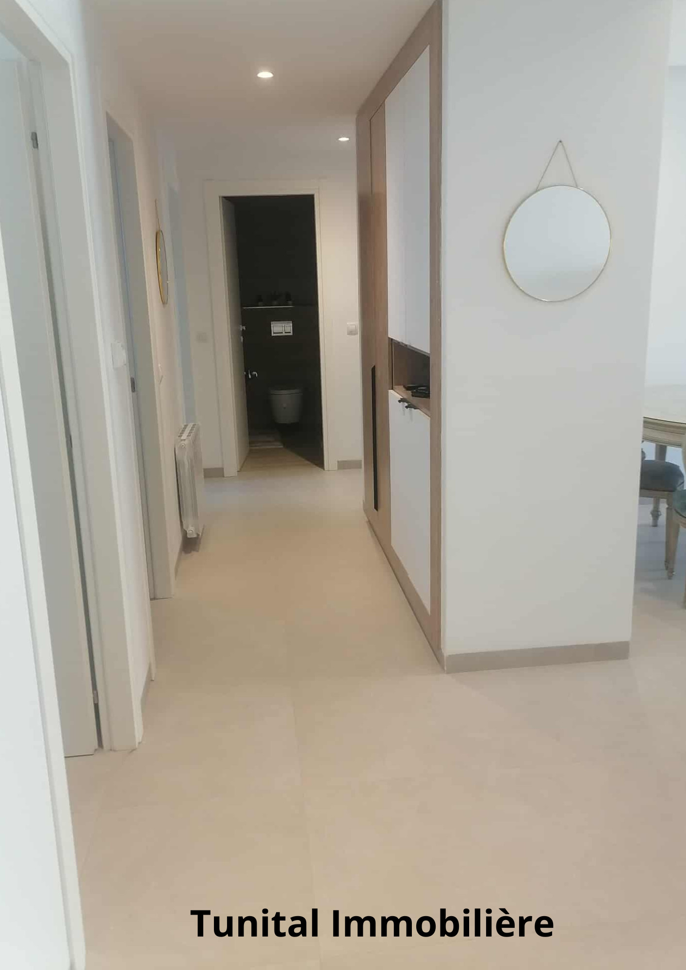A louer appartement au premier étage meublé haut standing luxueux dans une résidence neuve pour longue durée, double ascenseur composé de : salon, salle à manger avec terrasse, deux chambres à coucher avec des dressings, salle de bain, salle d'eau, cuisine bien équipée avec séchoir, 4 climatiseurs, chauffage central, place parking au sous sol