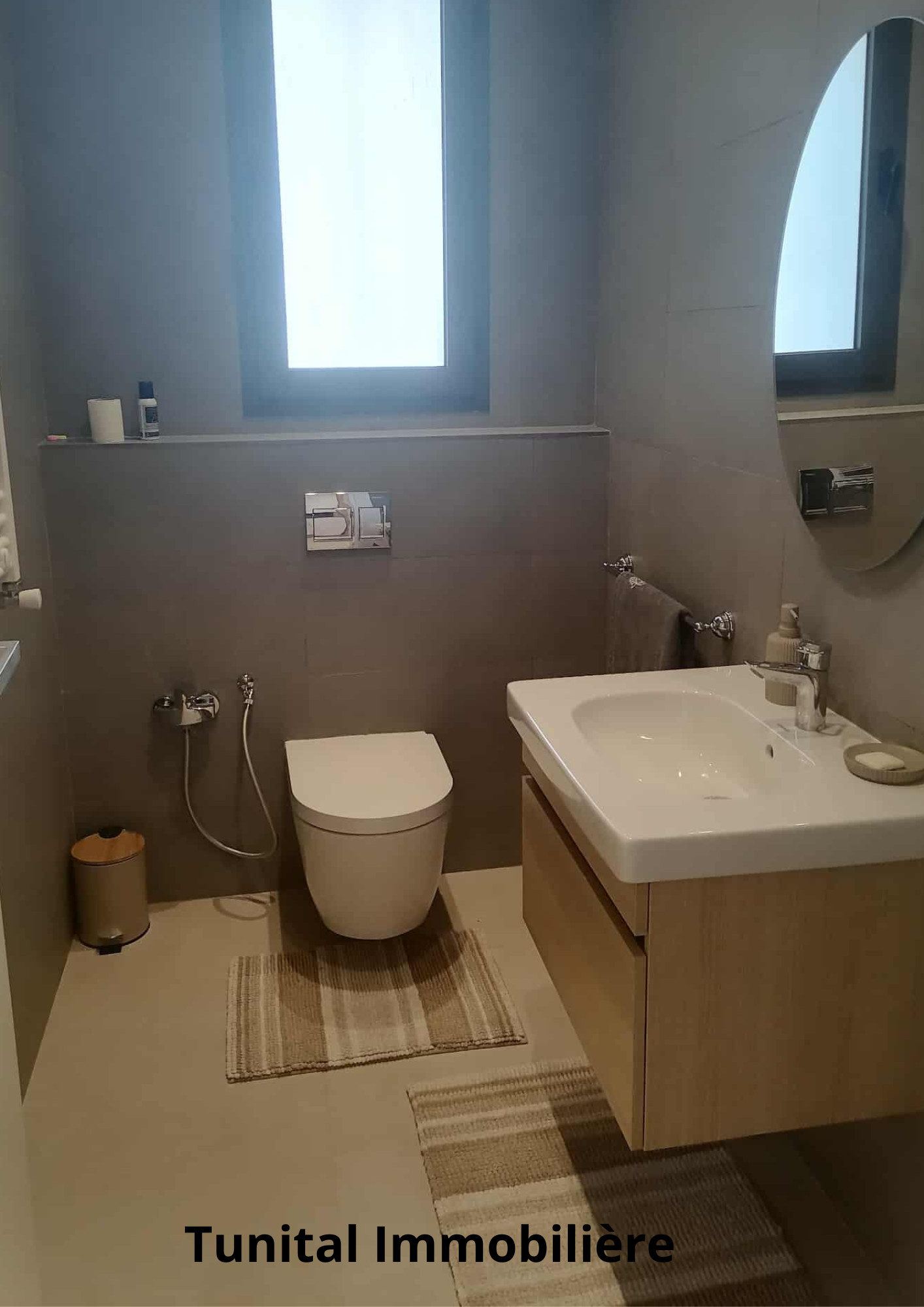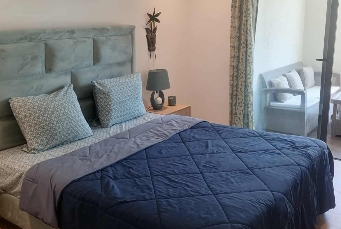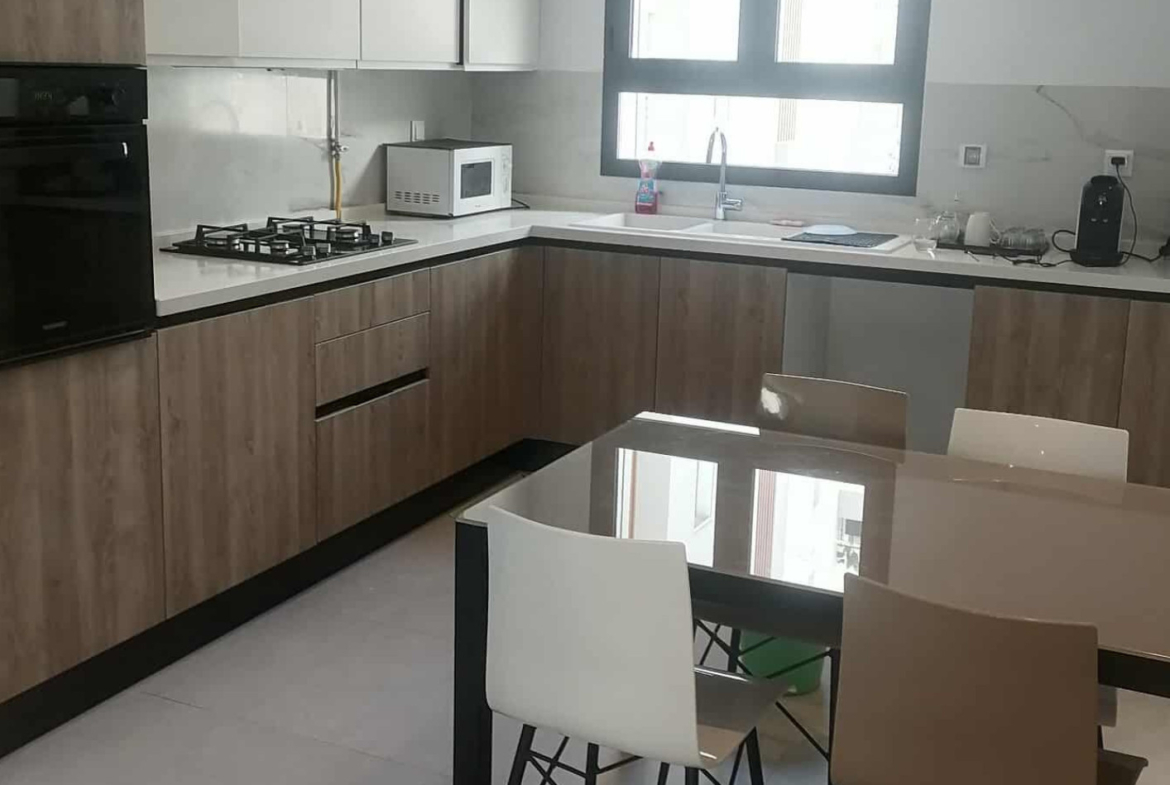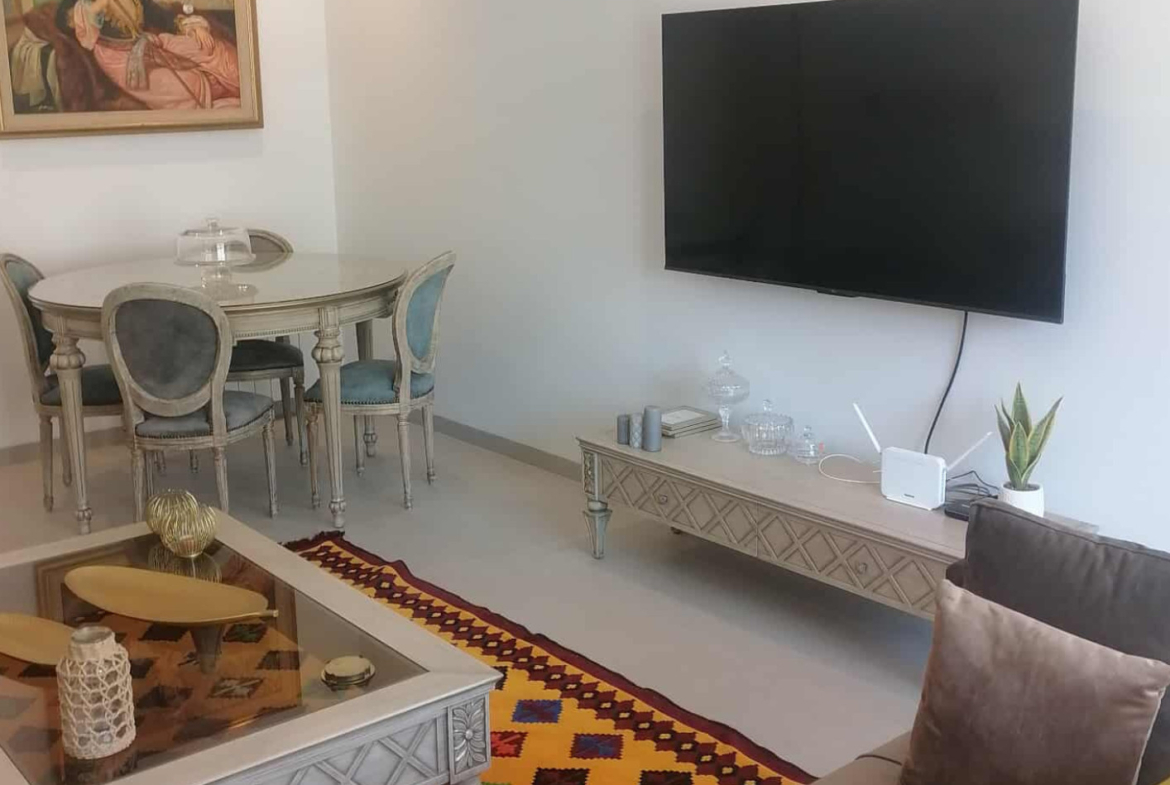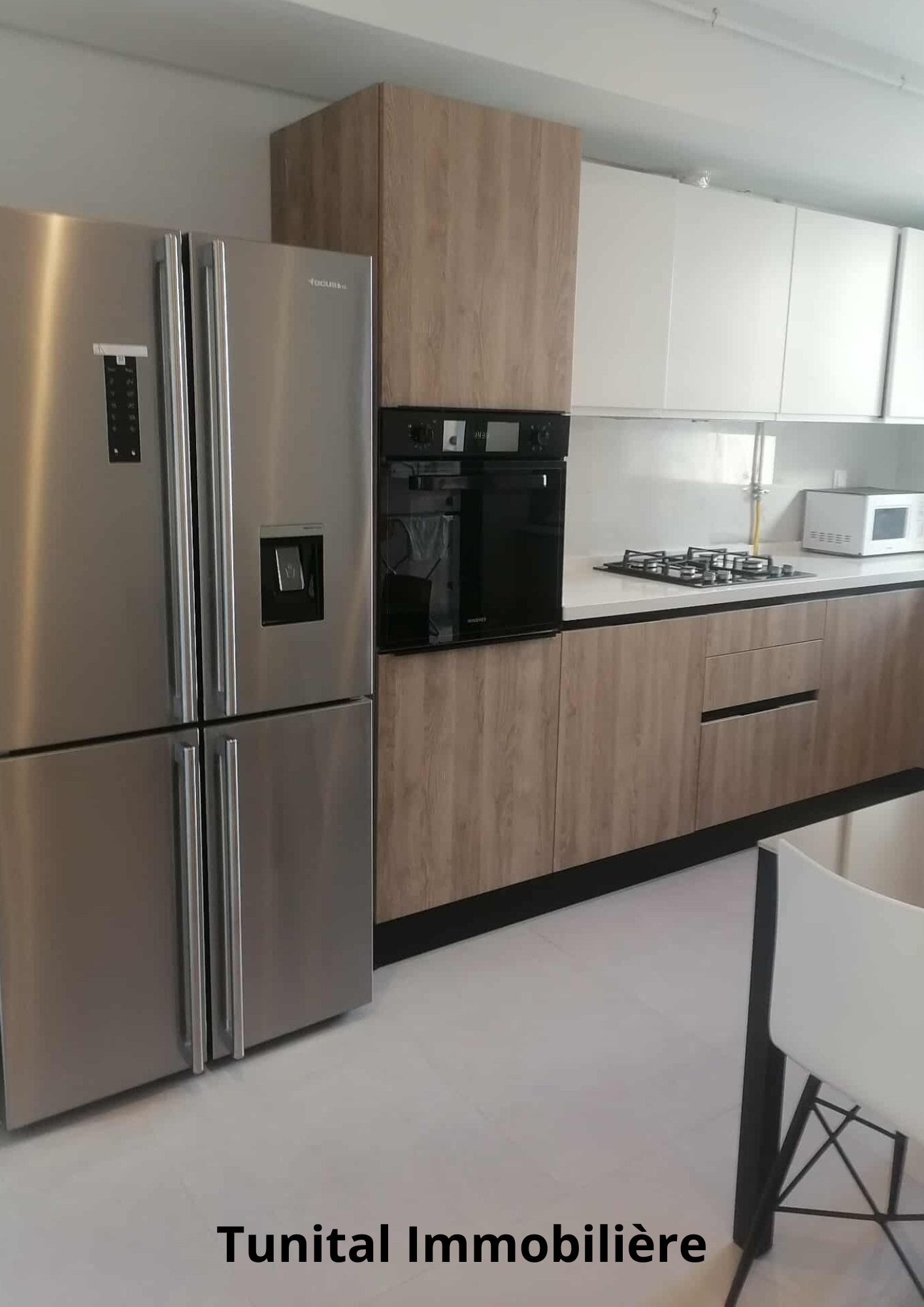 A louer appartement au premier étage meublé haut standing luxueux dans une résidence neuve pour longue durée, double ascenseur composé de : salon, salle à manger avec terrasse, deux chambres à coucher avec des dressings, salle de bain, salle d'eau, cuisine bien équipée avec séchoir, 4 climatiseurs, chauffage central, place parking au sous sol