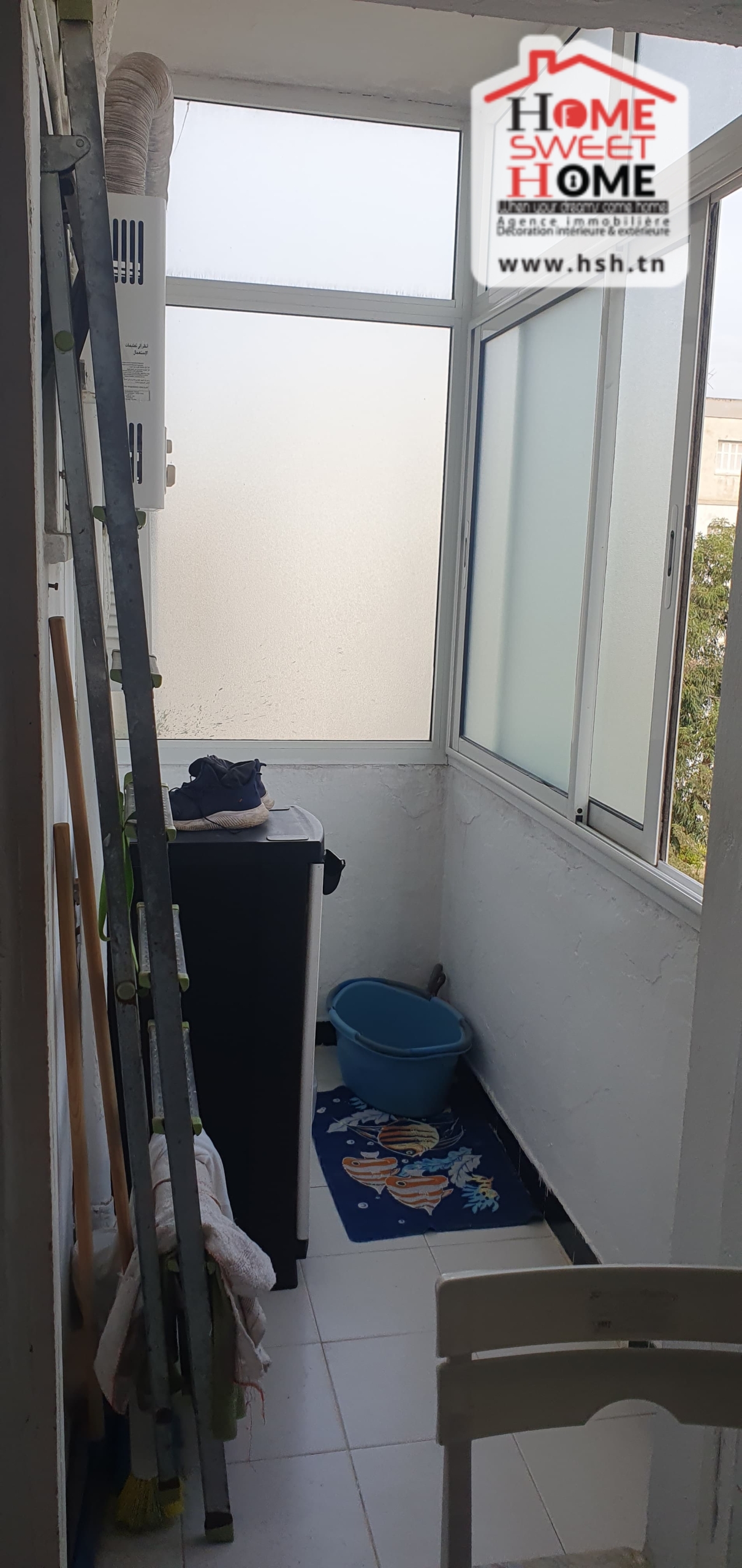 Un appart de charme situé au 3éme étage dans une résidence sans ascenseur à EL Manzah 8. A L'entrée, Sur un salon avec balcon, une cuisine avec séchoir, 2 chambres et une salle de bain. Cet appartement dispose également d'une place de parking à l'extérieur.