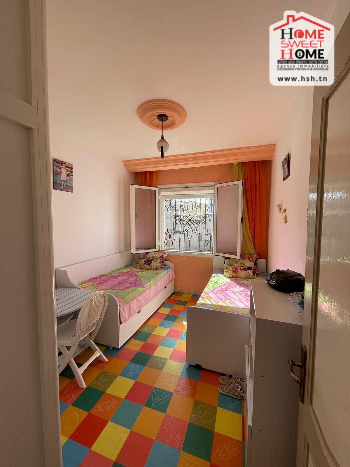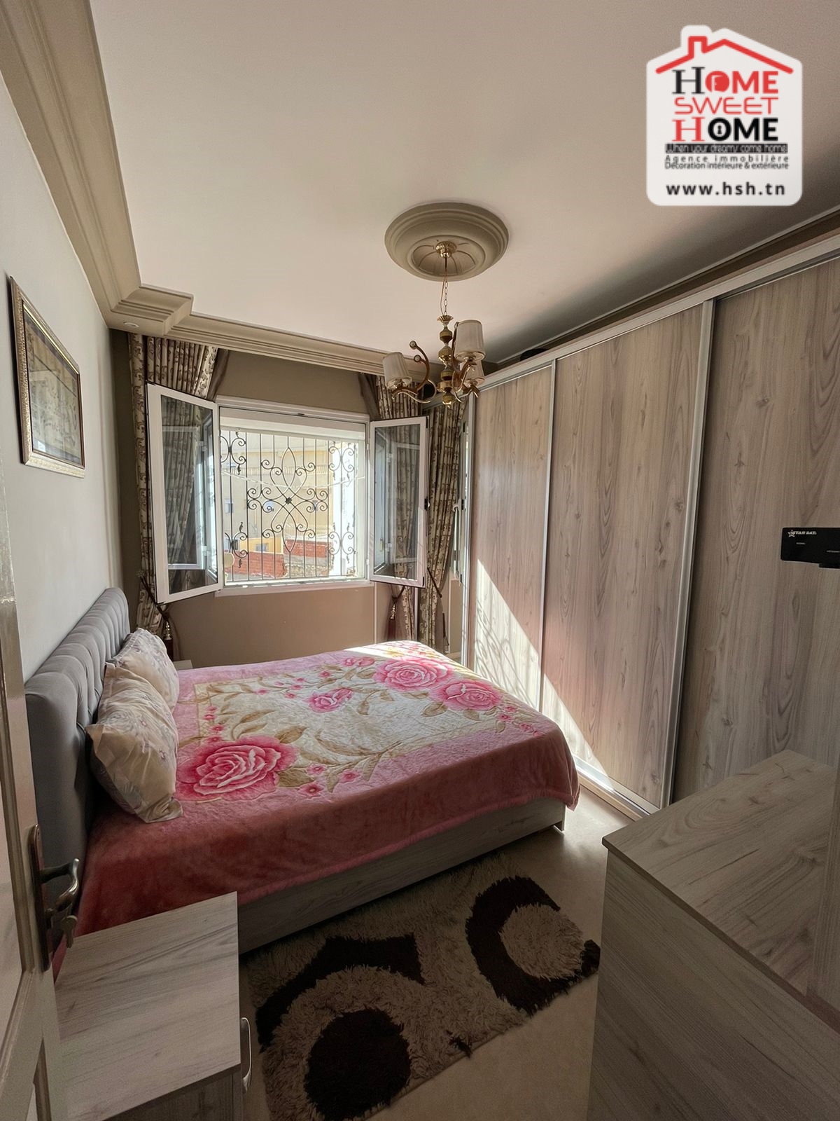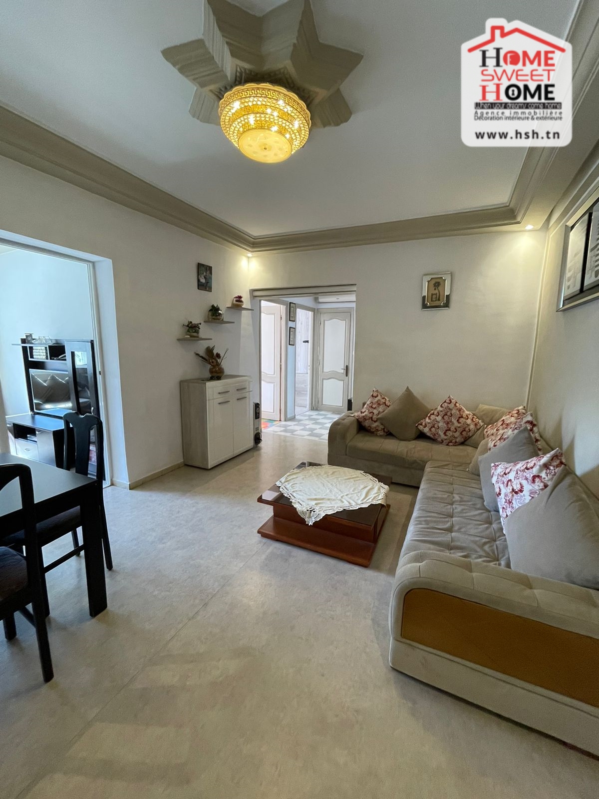 Un appartement de haut standing situé au 2 éme étage dans une résidence sans ascenseur au coeur du Centre Ville de Tunis. D'une à l'entrée un salon, un séjour, une cuisine équipée avec séchoir, 3 chambres et une salle de bain.