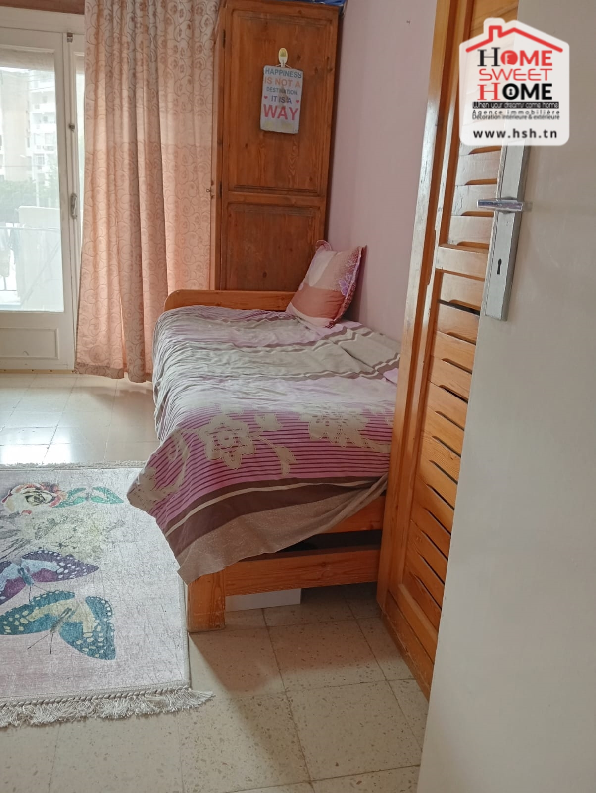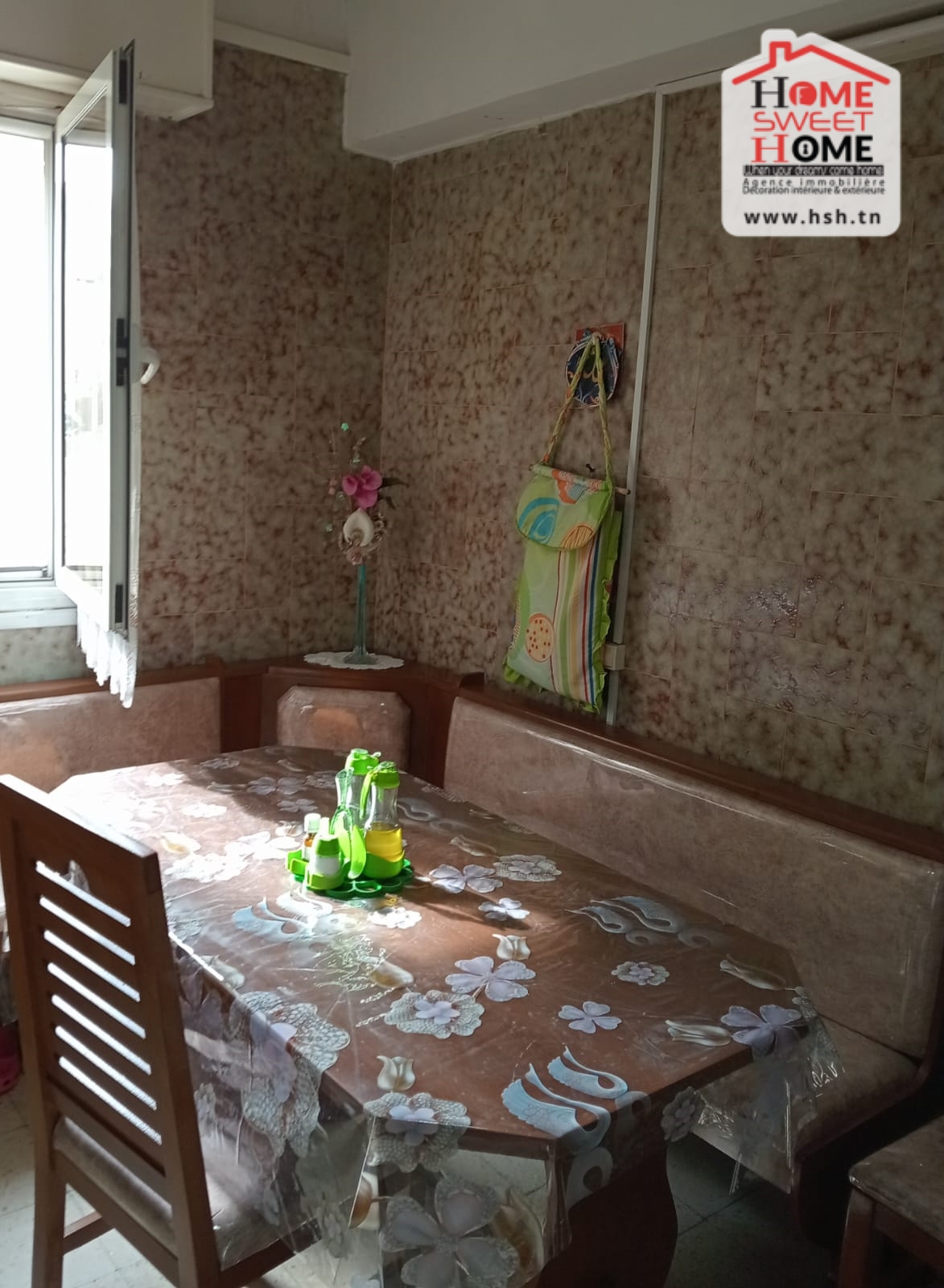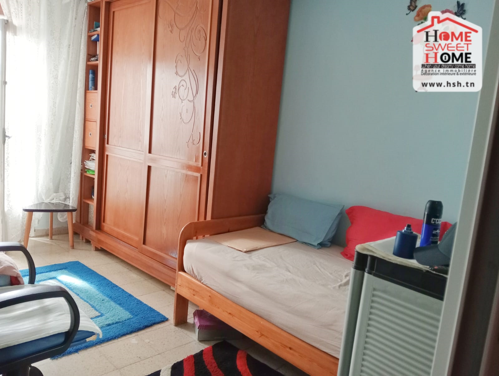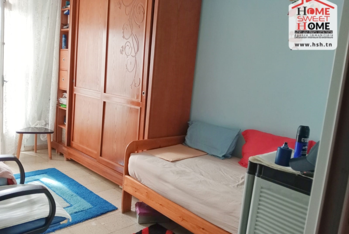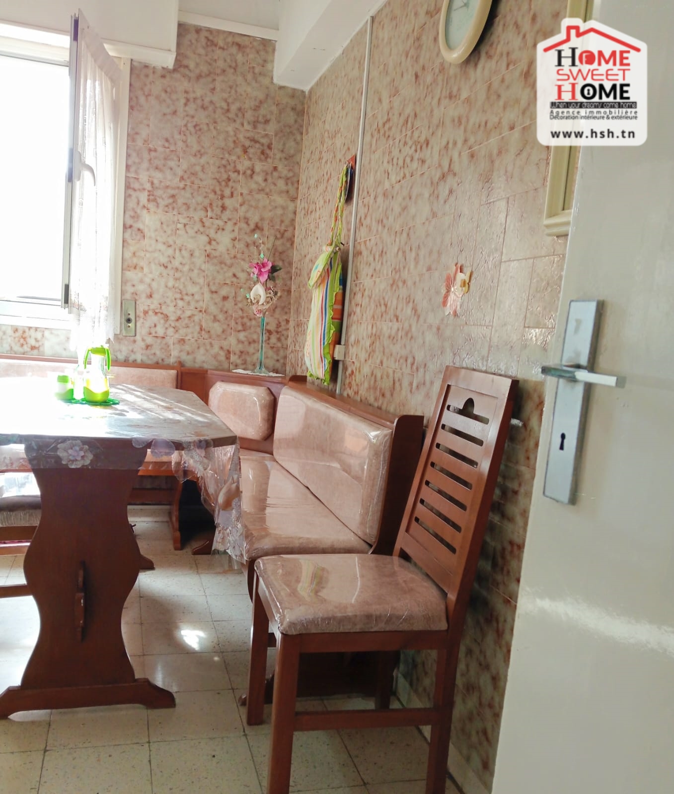 Charmant appart S 3 lumineux, d'une superficie de 132 m², situé au 2 éme étage avec ascenseur, à Radès Forêt. Il se compose d'une entrée avec placard, d'un salon spacieux avec un grand balcon séparé par une baie vitrée sécurisée incluant un placard, d'une cuisine équipée avec une salle à manger, de 3 chambres, dont 2 avec balcon équipé d' 'un placard, d'une salle de bain et de toilettes séparées.