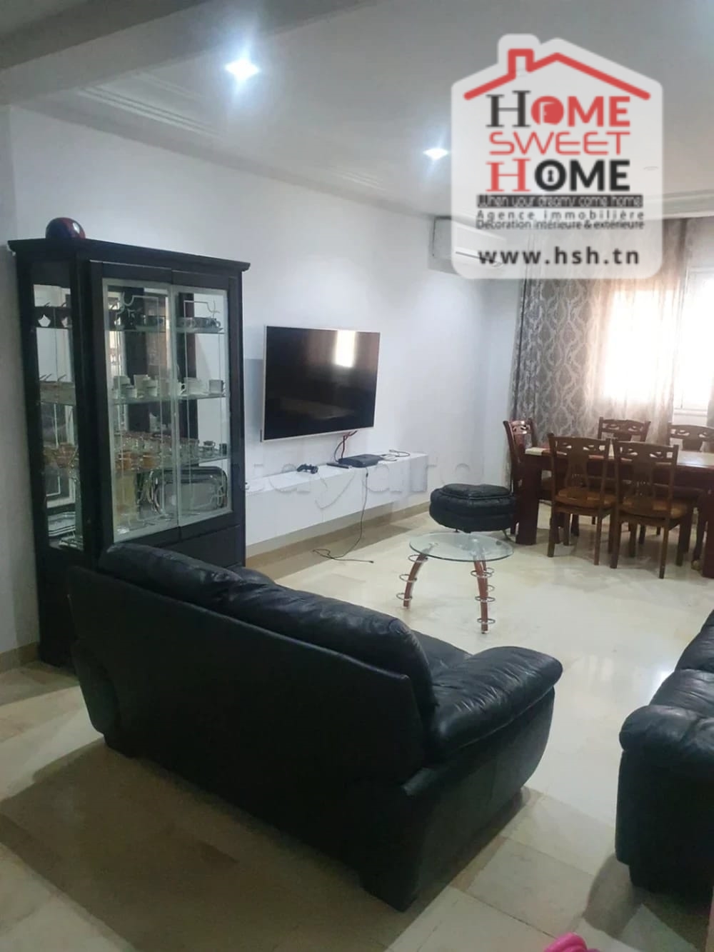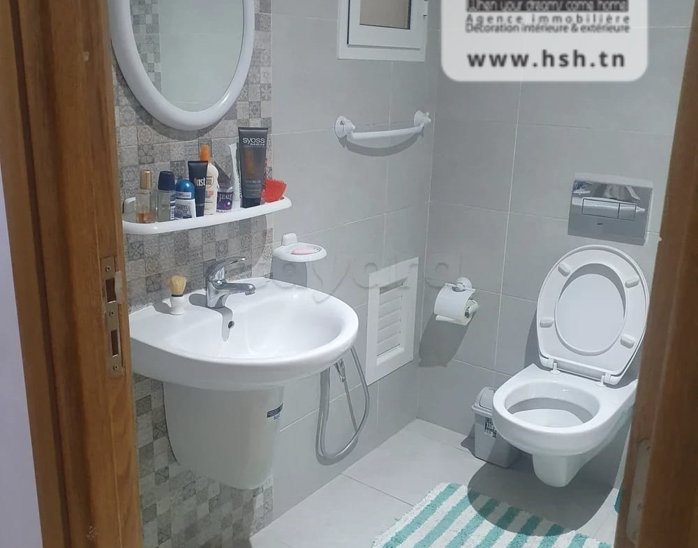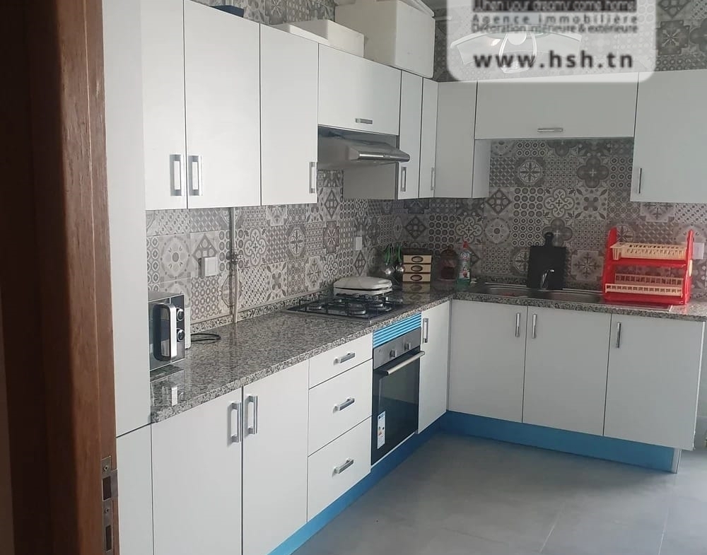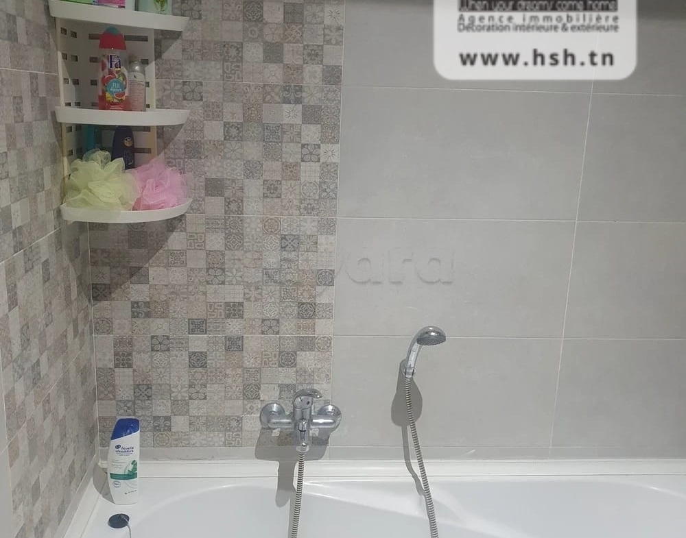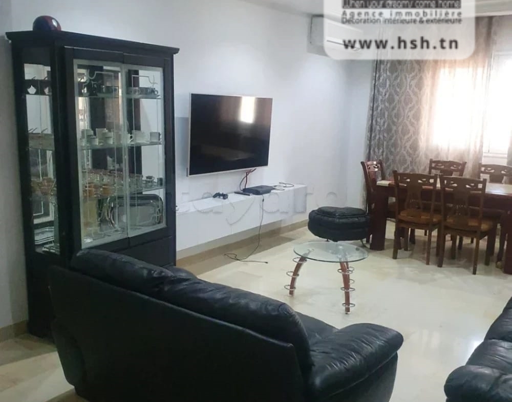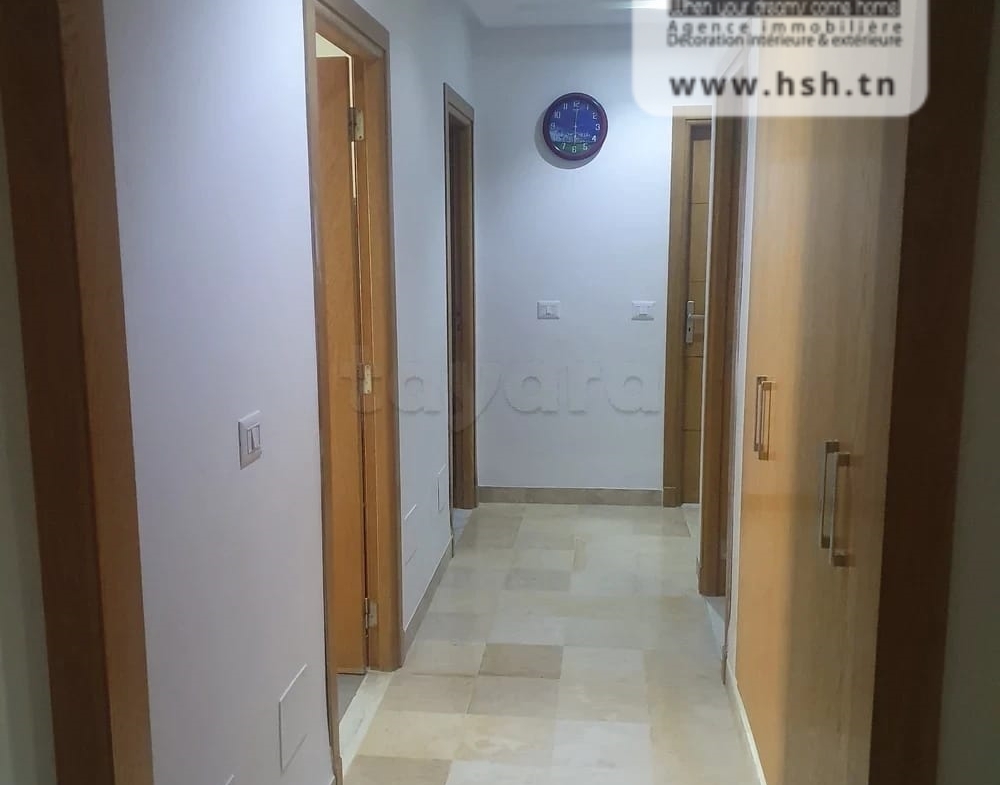 Un appart au 5éme étage avec ascenseur situé à L'Aouina, Cité Les Palmeraies. A l'entrée, sur un salon, une cuisine équipée avec séchoir, 3 chambres à coucher et une salle de bain. A l'extérieur, sur une place de parking sous-sol.