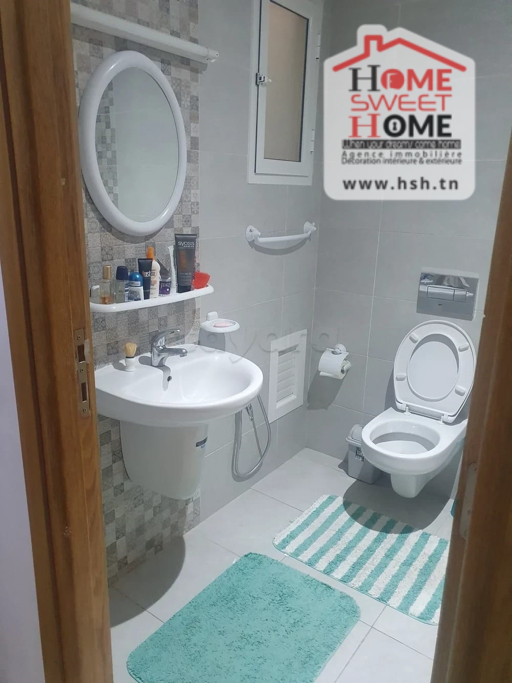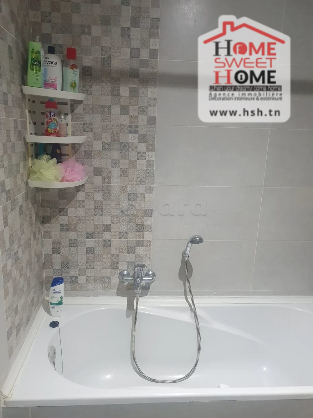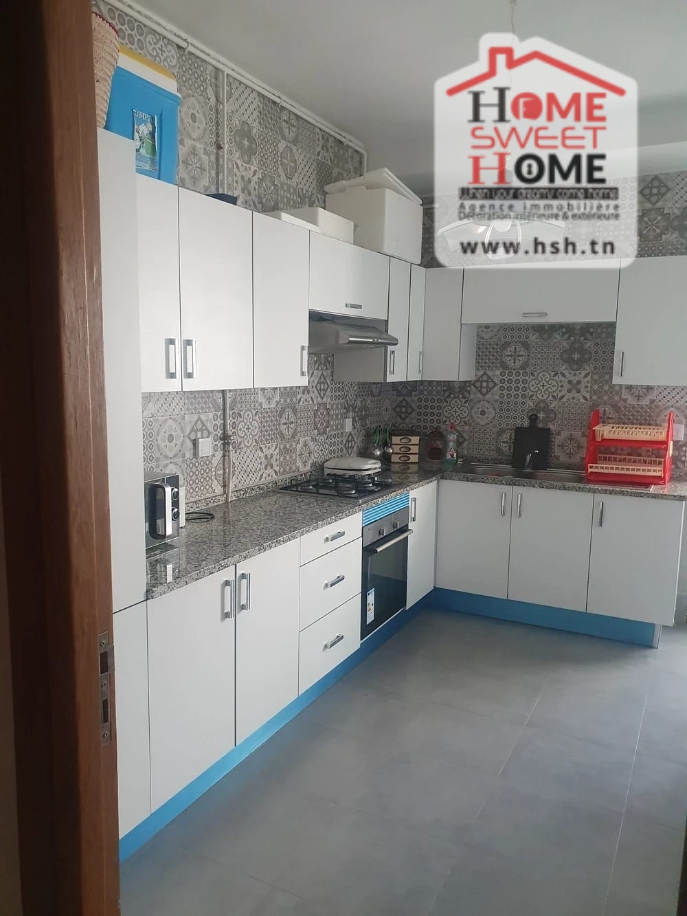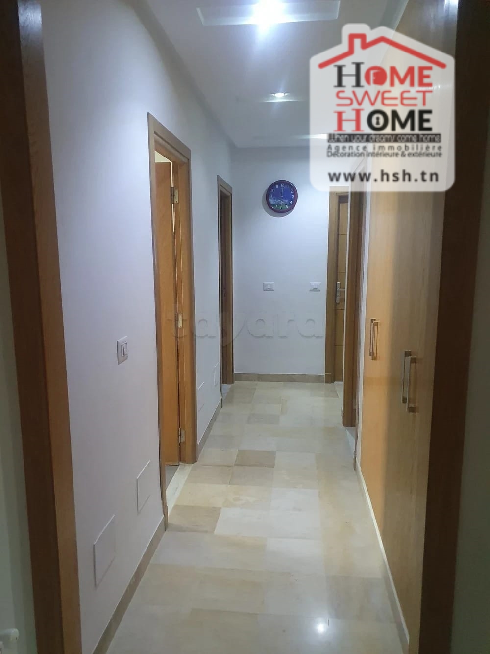 Un appart au 5éme étage avec ascenseur situé à L'Aouina, Cité Les Palmeraies. A l'entrée, sur un salon, une cuisine équipée avec séchoir, 3 chambres à coucher et une salle de bain. A l'extérieur, sur une place de parking sous-sol.