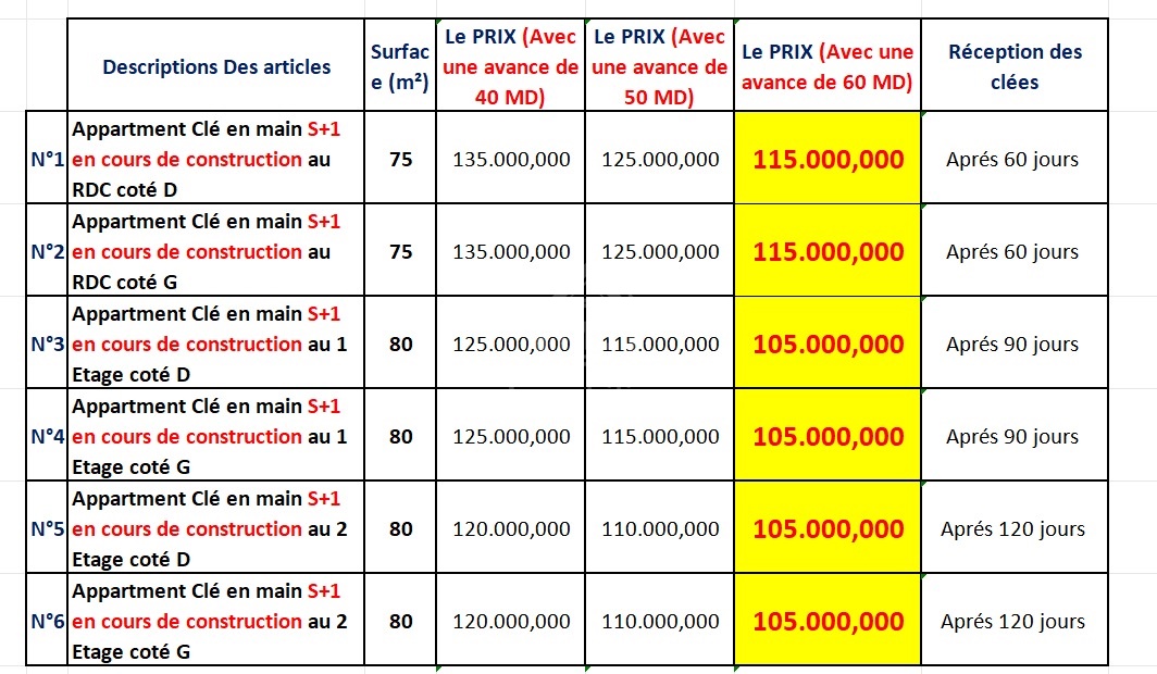 Des S+1 encours de construction à Hammamet à vendre