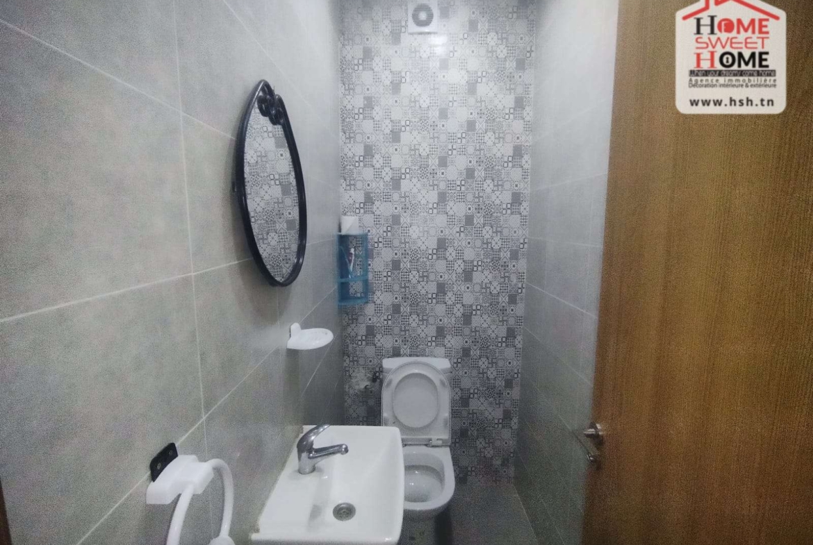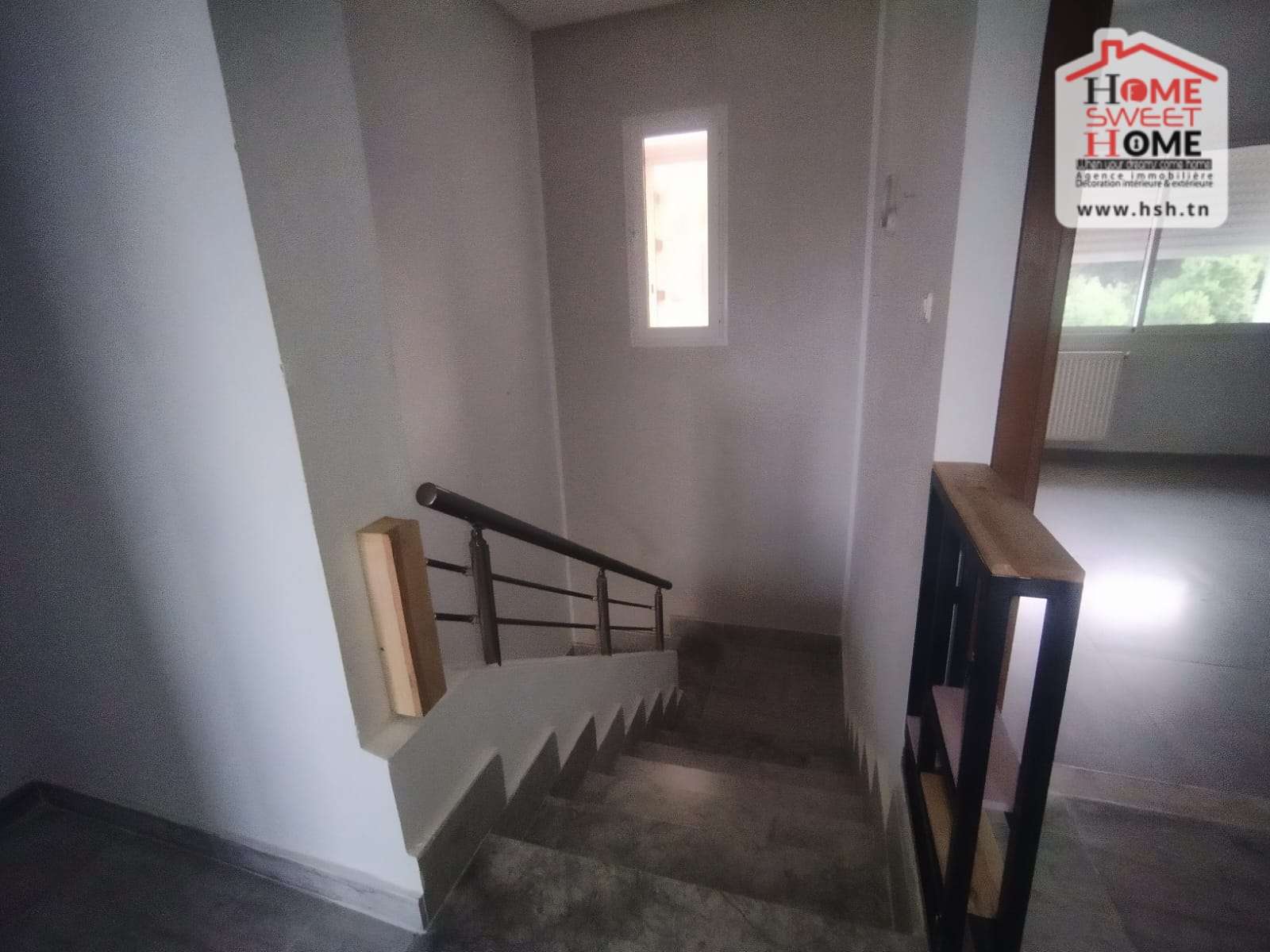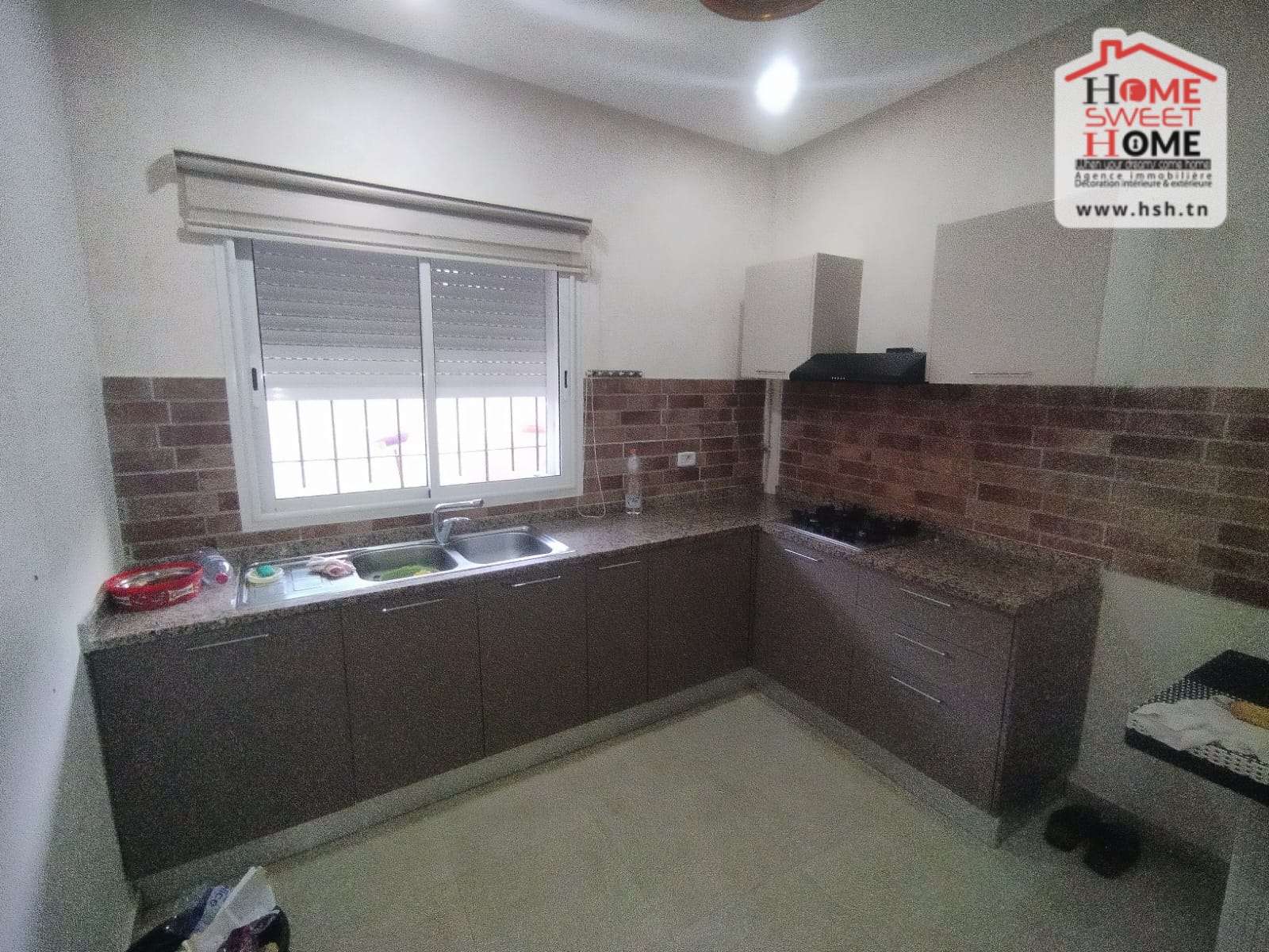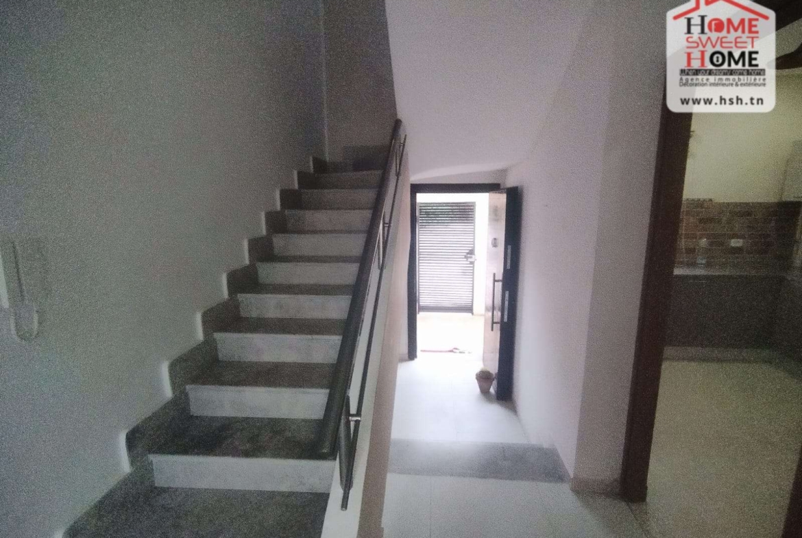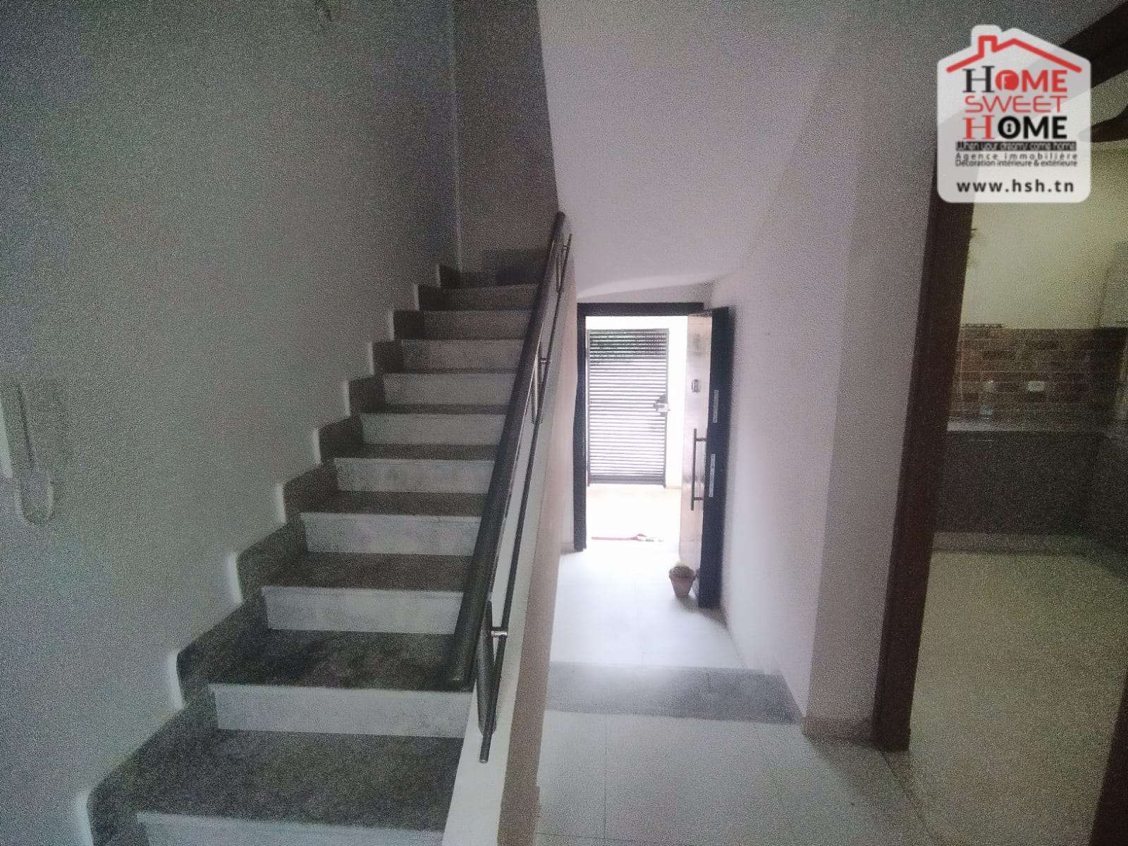 | Un charmant duplex sur un terrain de 140 m² situé dans un quartier résidentiel d'Ezzahra, Ben Arous. Au RDC, On a un salon, salle à manger, une cuisine équipée avec séchoir et une salle d'eau. A L'étage, Sur un 3 chambres, une salle de bain et un balcon avec une vue dégagée. |
