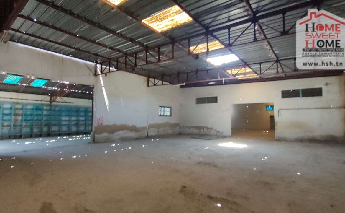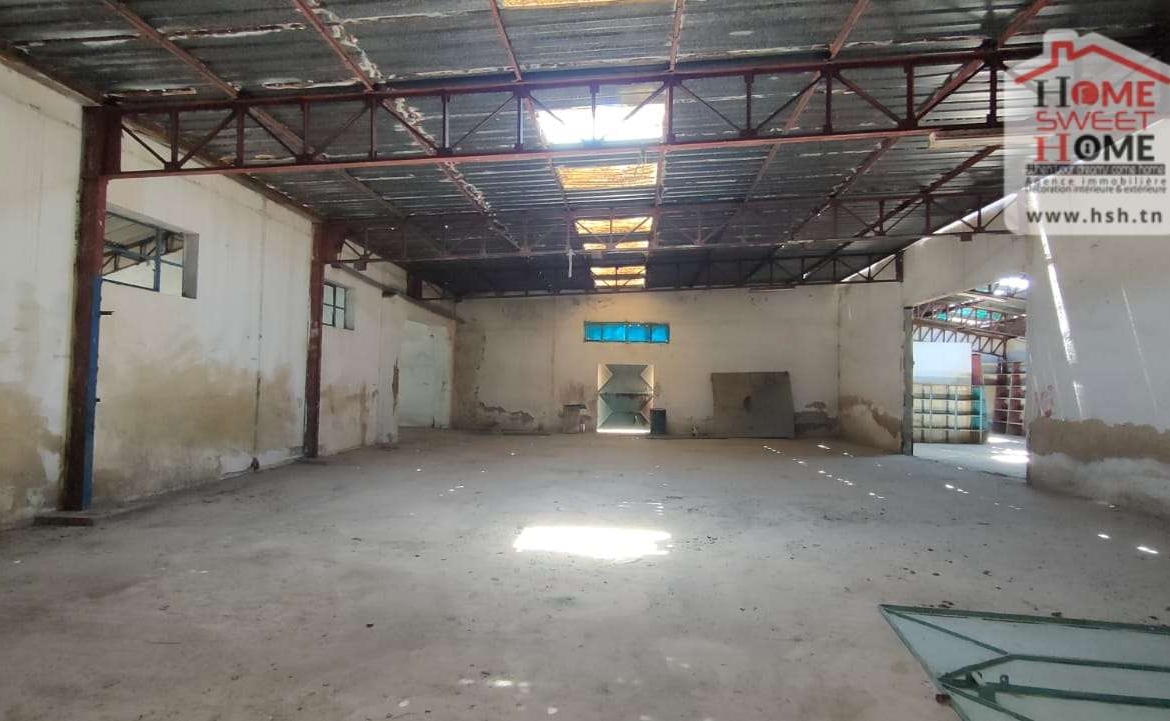 | Entrepôt d'une superficie de 5500 m² situé dans la zone industrielle à Rades. Il comprend un espace de stockage couvert de 1000 m², ainsi qu'une partie administrative composée de 5 bureaux, d'une cuisine et d'un bloc sanitaire. L'entrepôt bénéficie également d'une aire de circulation goudronnée. |