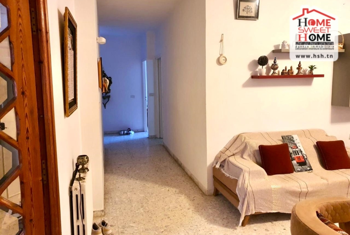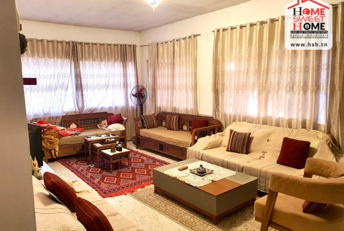 Un étage de villa situé dans un quartier résidentiel à Cité EL Wifak, La Marsa. A L'entrée, Sur un salon avec un balcon, une cuisine, 3 chambres et une salle de bain.