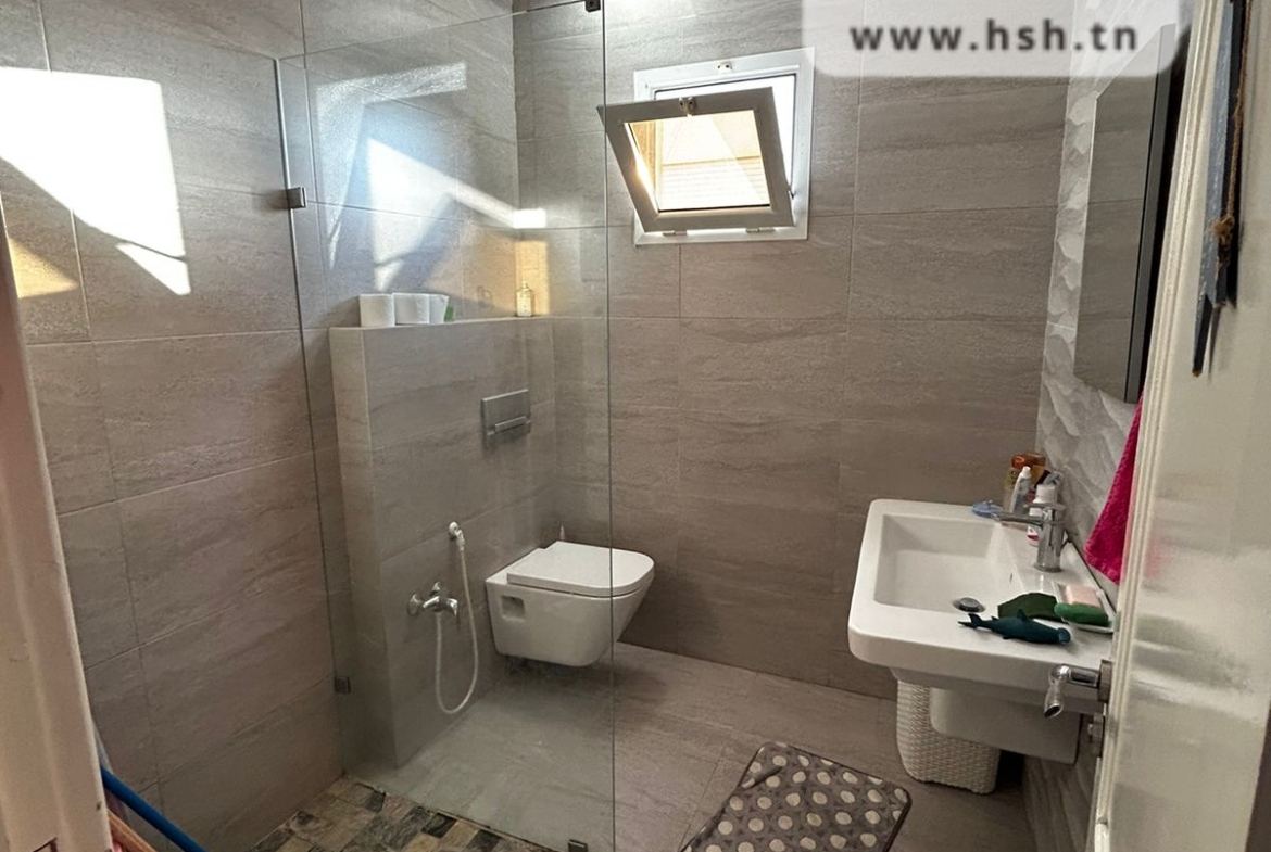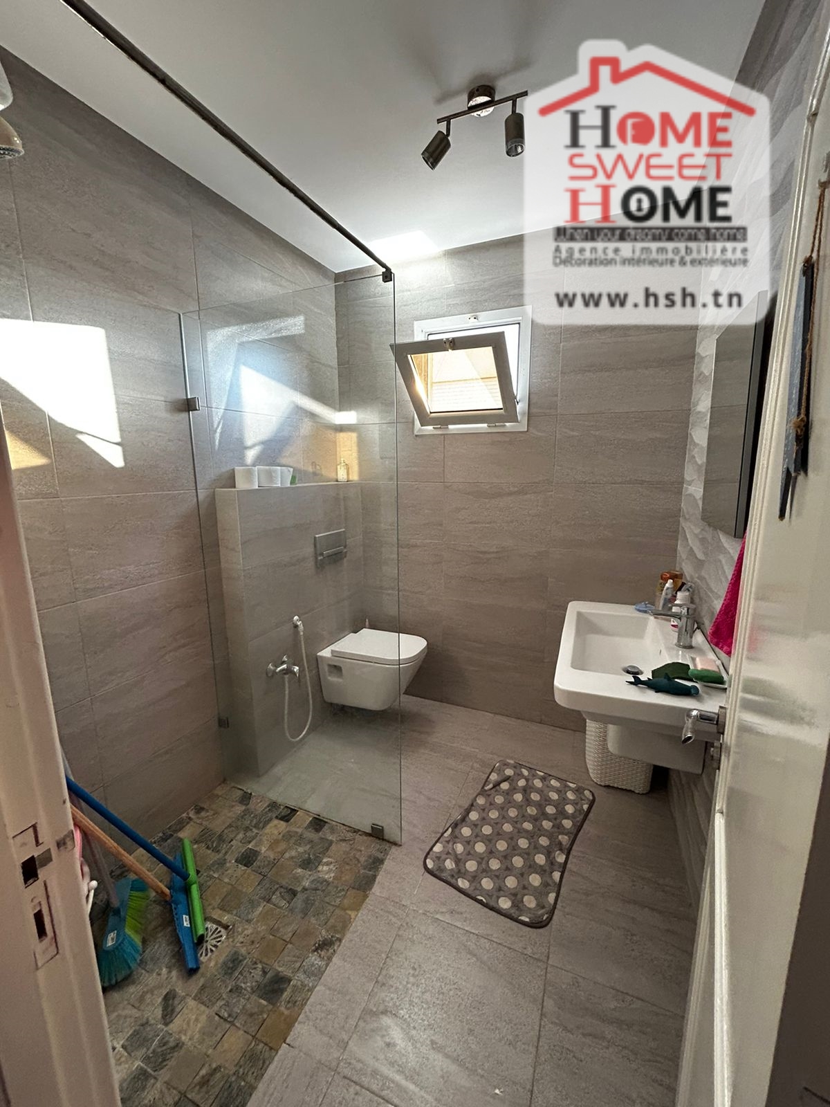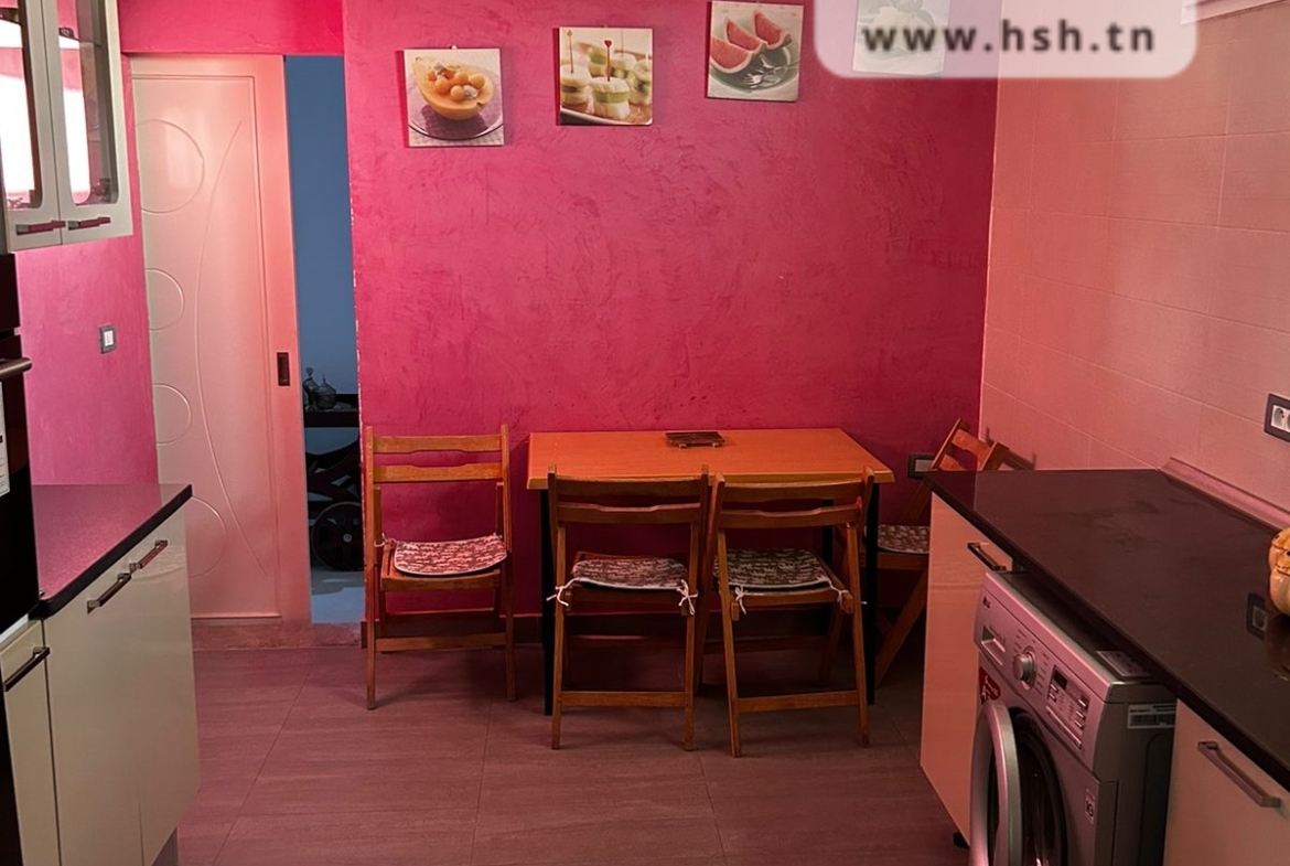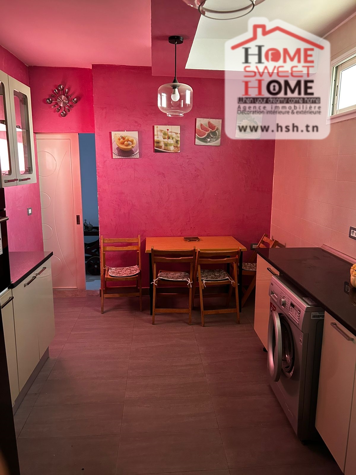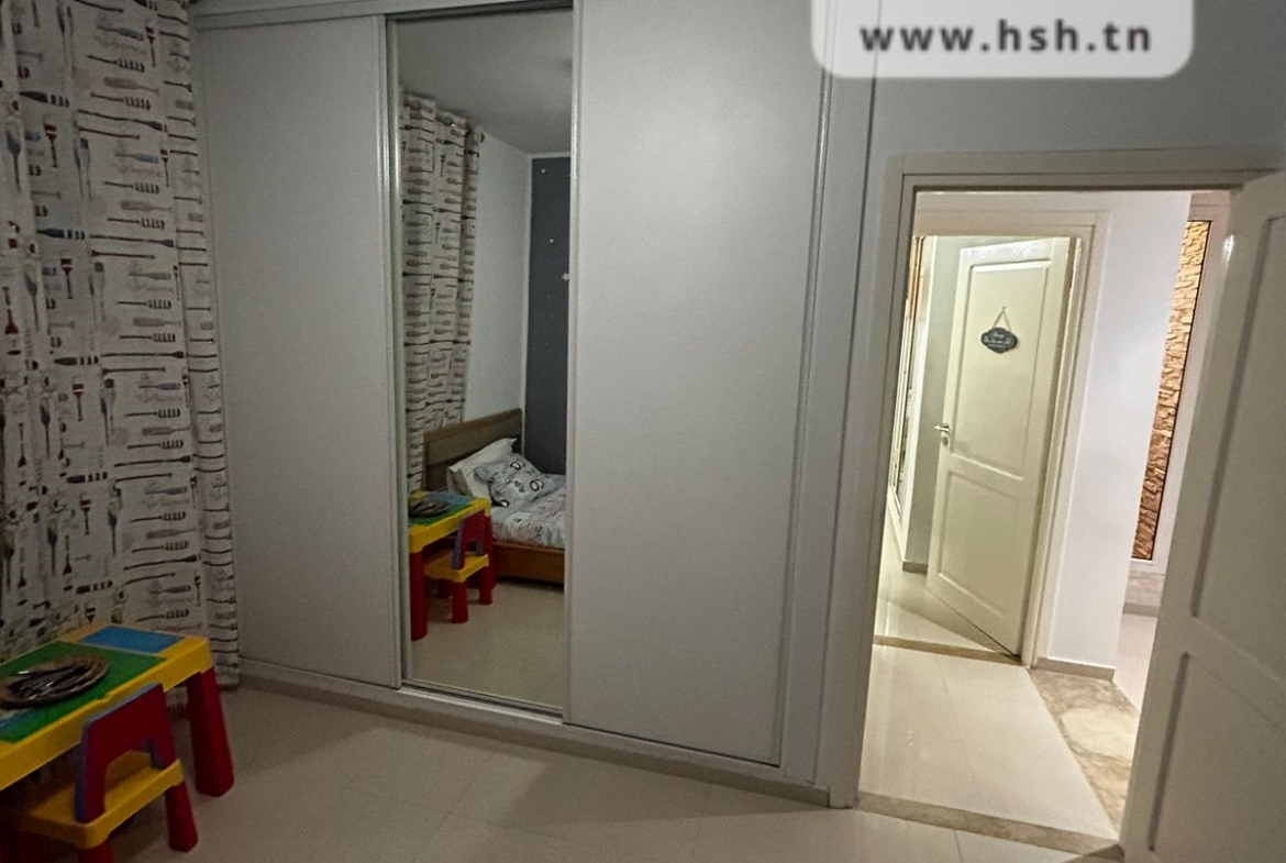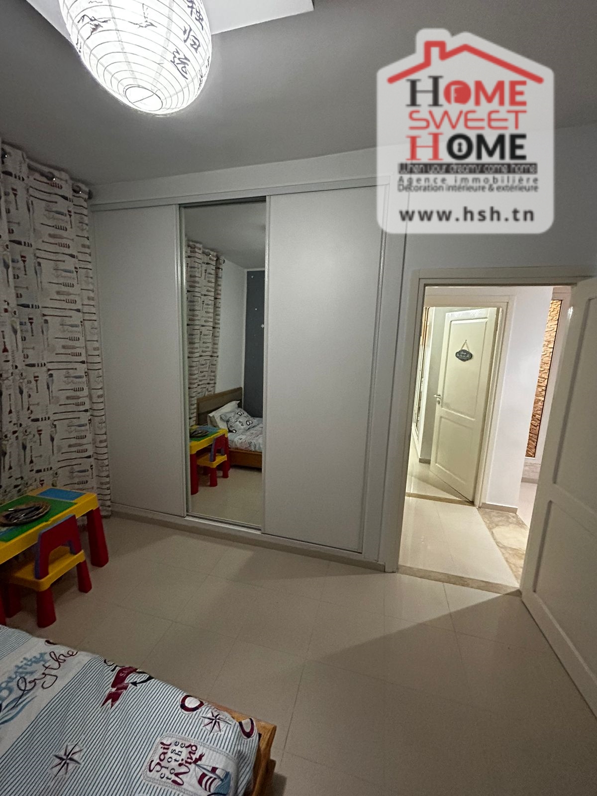 Un étage de villa meublée au 1er étage situé à L'Aouina, à 2min de l'école américaine. A l'entrée, sur un grand salon, une cuisine équipée, une suite parentale, une chambre à coucher et une salle de bain.