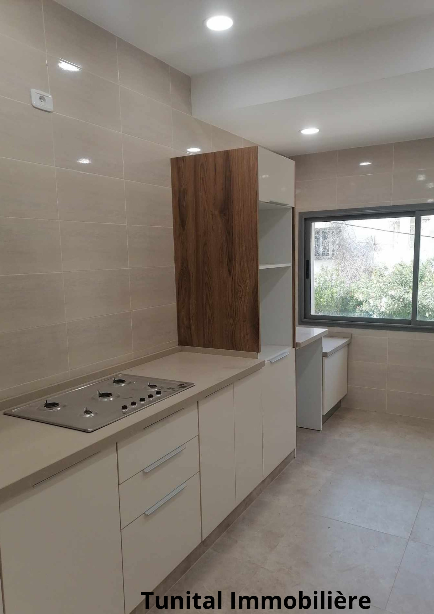 La Marsa Cité la Roseraie A louer appartement vide standing au premier étage composé de : salon, salle à manger, 3 chambres à coucher, cuisine équipée, salle d'eau salle de bain, chauffage central