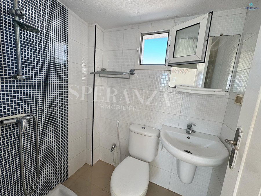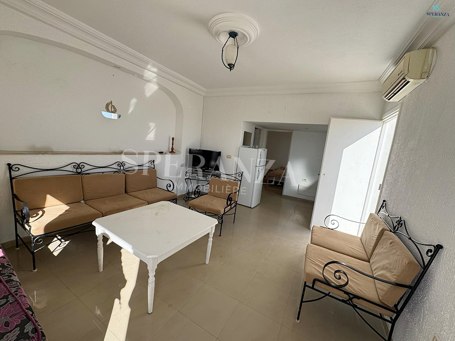 Speranza Immobilière Hammamet vous propose à la location annuelle cet appartement idéalement situé à Hammamet Centre, au deuxième étage, à proximité de toutes les commodités. La partie jour se compose d'un salon lumineux, d'une kitchenette aménagée avec des espaces de rangement pratiques, ainsi qu'une salle d'eau. Et la partie nuit se compose d'une chambre à coucher confortable, complétée par une terrasse offrant une belle vue sur la mer.