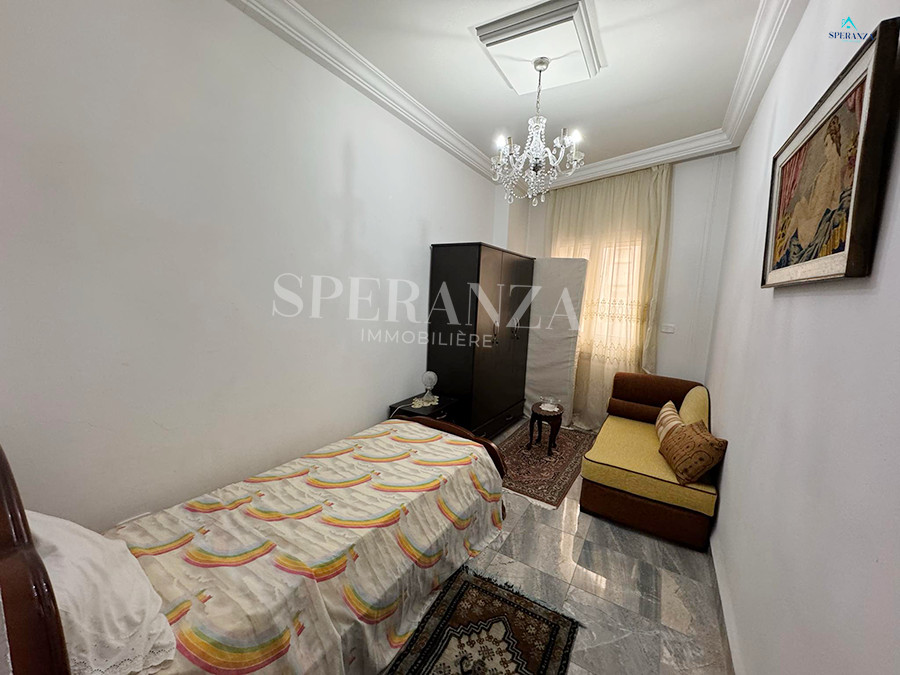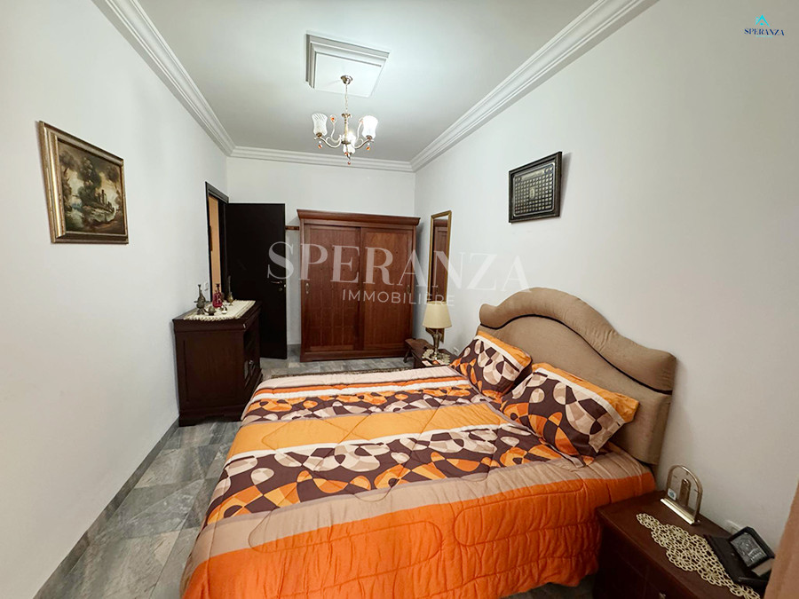 Speranza immobilière Hammamet vous propose à la location annuelle . Cet appartement est au premier étage qui se situe à Hammamet, il est proche de toutes les commodités. L'entrée principale se compose d'un jardin privé. La fête du jour se compose d'un salon lumineux, d'une cuisine bien équipée, d'une salle d'eau. La partie nuit dispose de deux chambres. Et une place de parking.