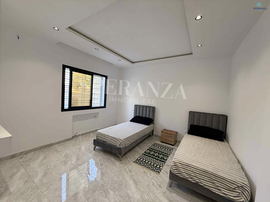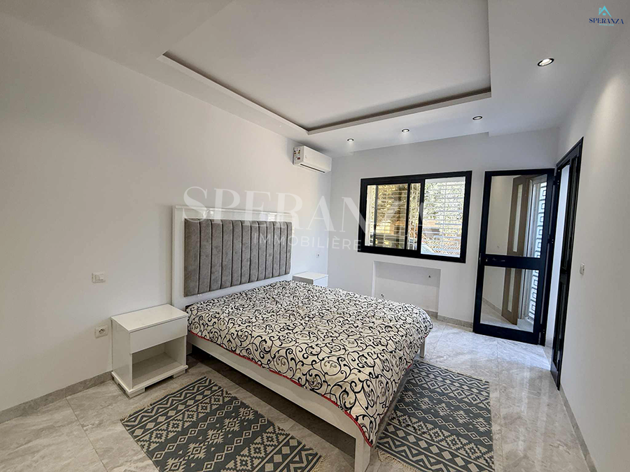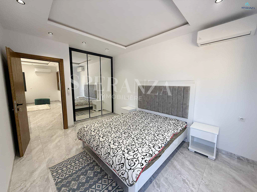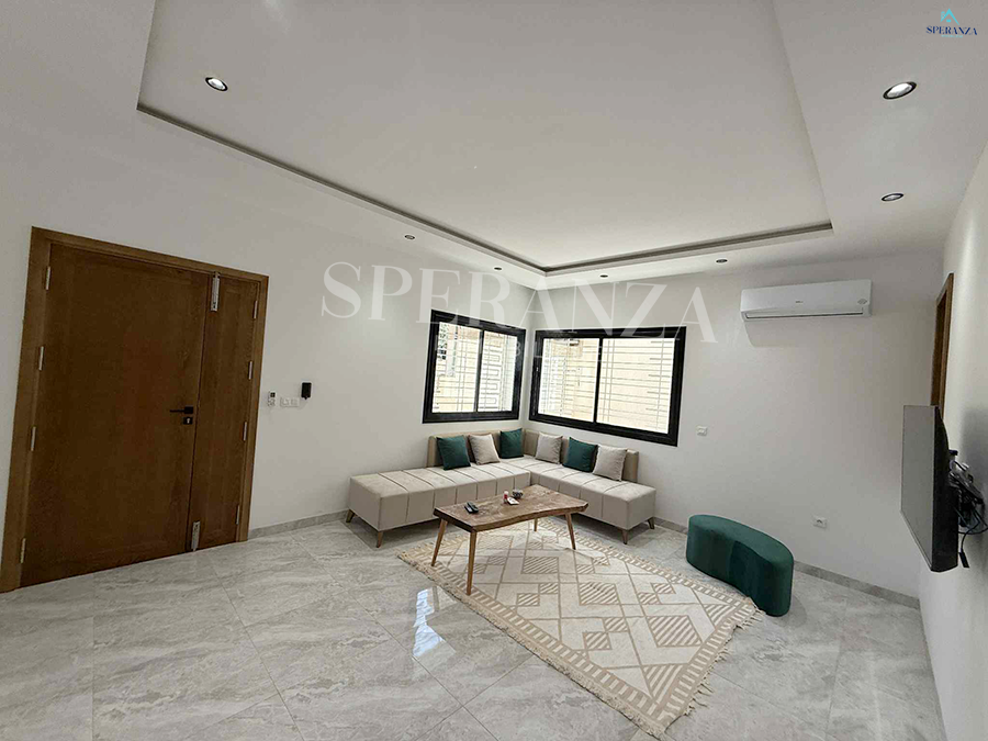 Speranza immobilière Hammamet vous propose à la location vacances Cet appartement RDC situé à Hammamet centre, proche de toutes les commodités.La partie jours se compose par un salon lumineux,d'une cuisine aménagée avec des espaces de rangement,une salle d'eau .Le compartiment nuit se compose par deux chambres à coucher. Ainsi qu'un garage. NB( 3 minutes à pieds à la plage )