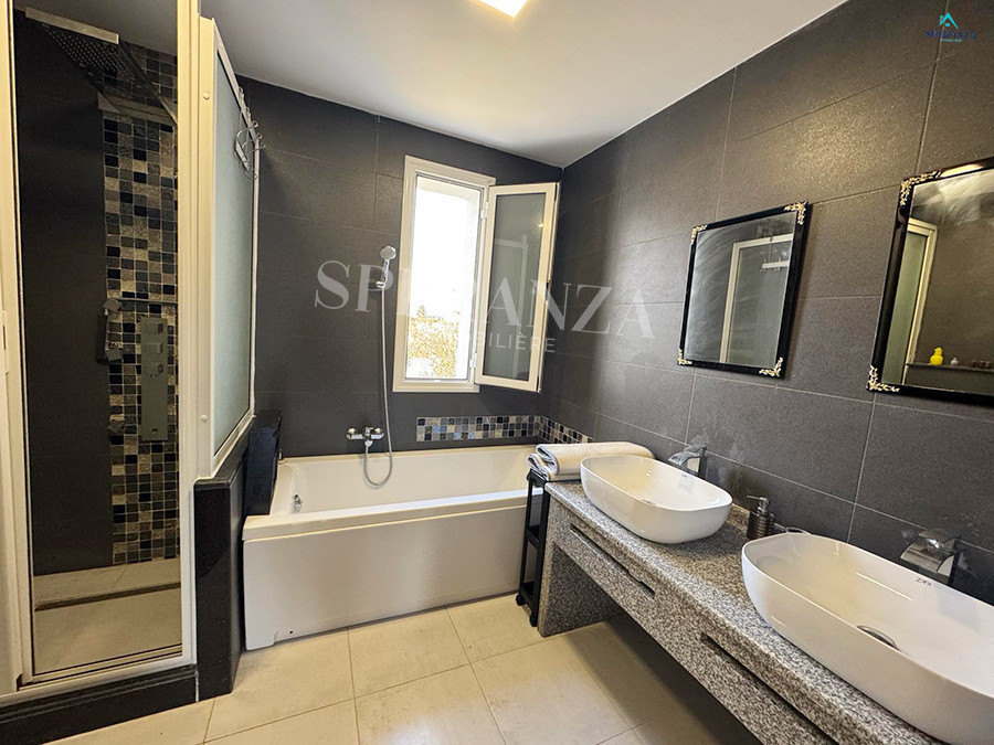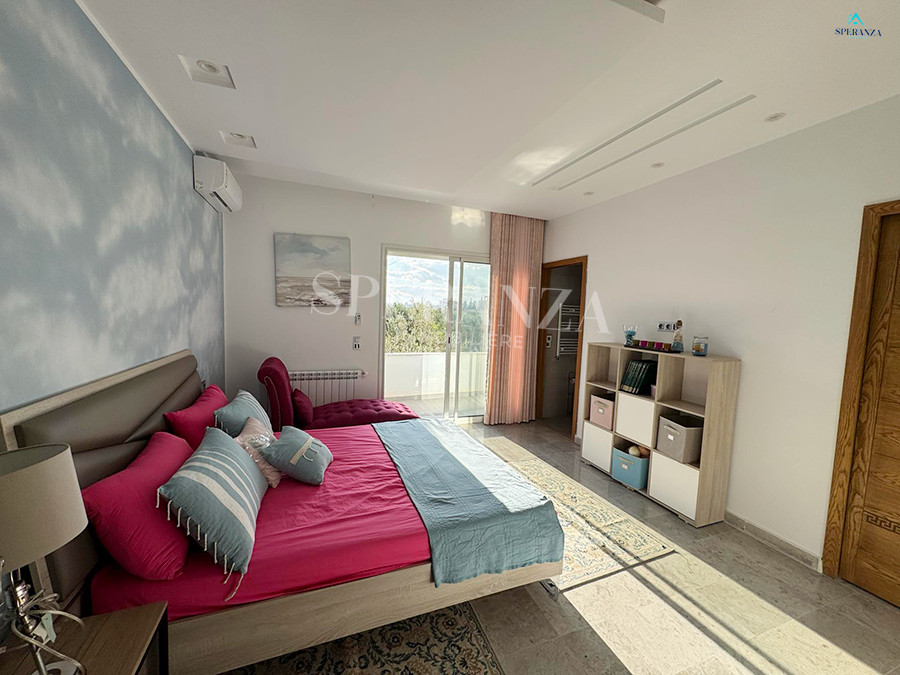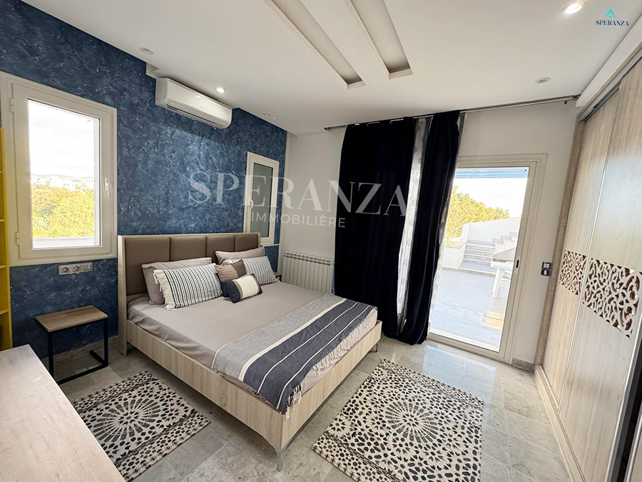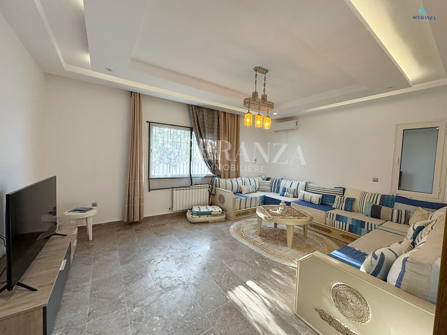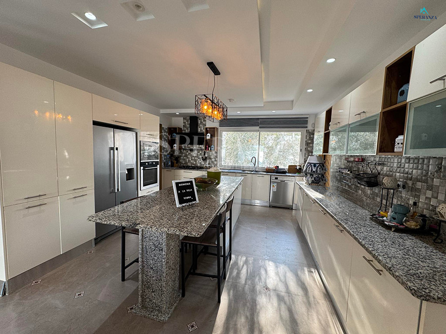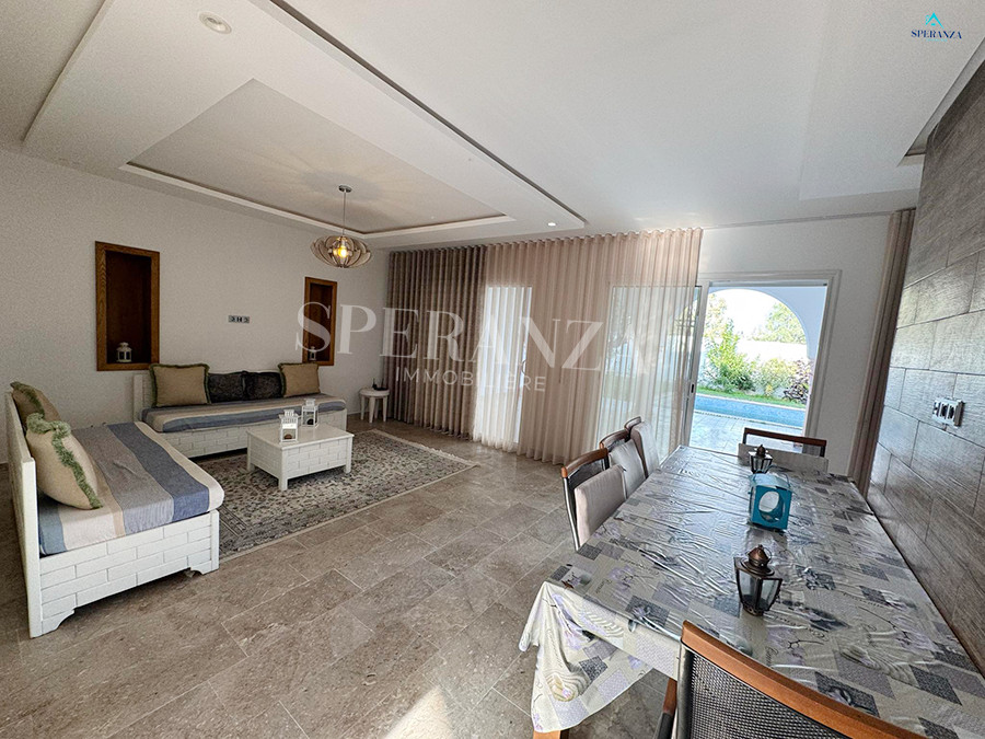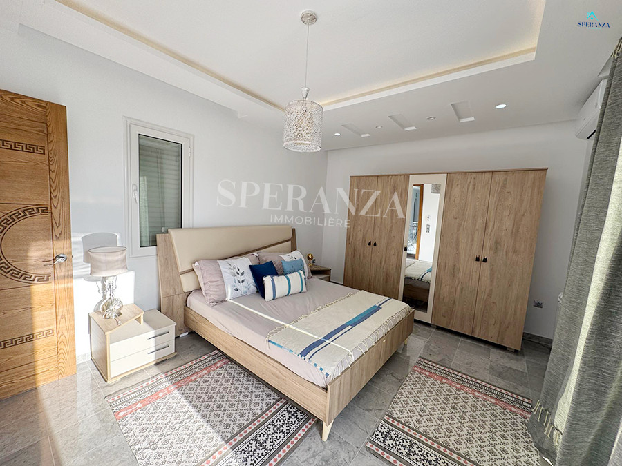 Speranza immobilière Hammamet vous propose à la location annuelle cette villa se situéeé à Hammamet . Dans un quartier calme et résidentiel. L'entrée principale s'ouvre sur un jardin gazonné avec piscine. Un salon lumineux ,un séjour, une cuisine bien équipée et aménagée avec des espaces de rangements,une salle d'eau. Le 1 er étage mène à la partie nuit qui dispose d'une suite parentale, d'une salle d'eau , de trois chambres accuchées et d'une terrasse .Un garage .