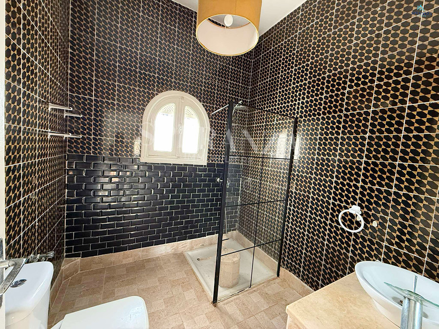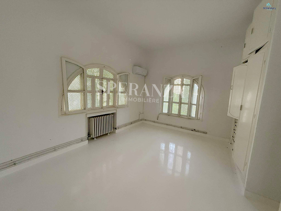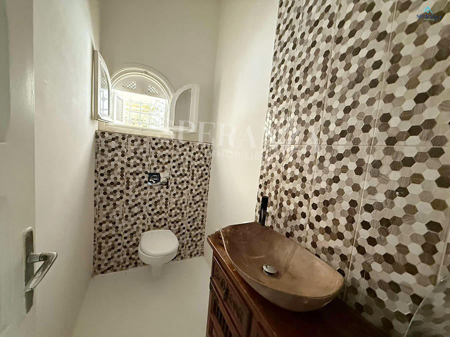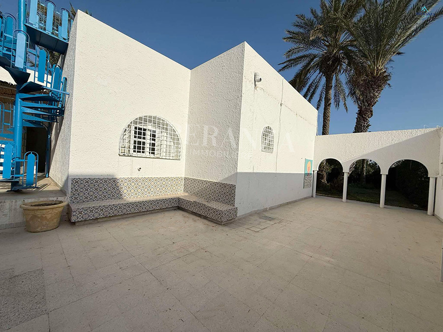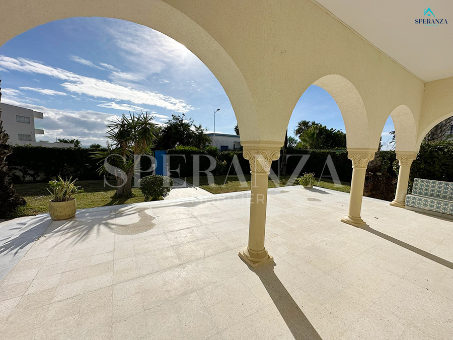 Speranza immobilière Hammamet vous propose à la location annuelle cette Villa qui se situe à Nabeul (Sidi Mahersi) ,elle est se trouve dans un quartier résidentiel particulier et calme ,elle est constituée d'une grand jardin gazonné qui offre plusieurs espaces .La partie jour est composée principalement d'un salon spacieux avec vue panoramique sur mer ,une cuisine dispose de plusieurs éléments de rangement ,deux salles d'eaux pour les invités complétaient la fête jour. La partie nuit se compose de trois chambres à coucher et un garage .NB cette villa contient un studio S+1 qui se compose par un salon ,une cuisine équipée ,salle d'eau et une chambre à coucher ( sans meubles ).