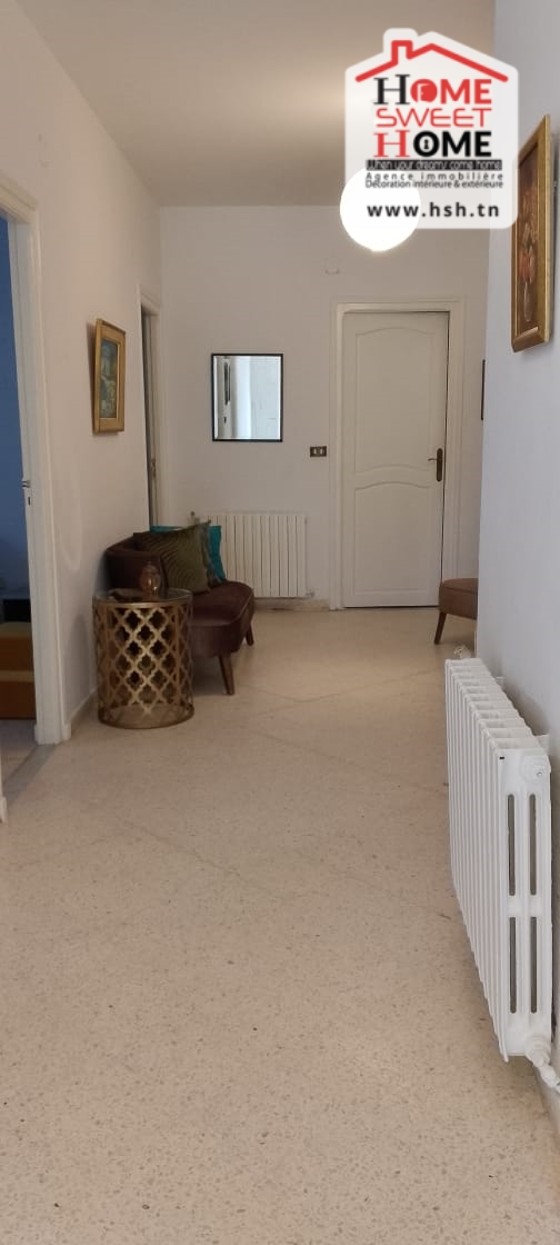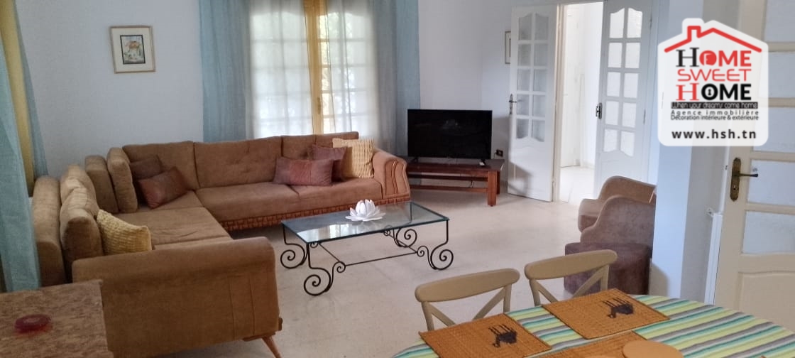 Un RDC de Villa richement meublé avec une entrée indépendante située dans un quartier résidentiel à La Marsa Ville. À L'entrée, On trouve un salon, une salle à manger, une cuisine équipée, 3 chambres et une salle de bain. A L'extérieur, Sur une terrasse, un jardin et un garage. Pour tous les renseignements, Contacter L'agent 56650780.