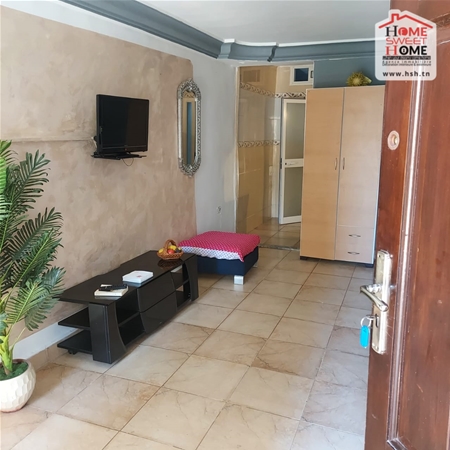 Un studio richement meublé situé dans un quartier résidentiel à Kheireddine, La Goulette. A L'entrée, On a un salon, une chambre, une cuisine et une salle de bain.