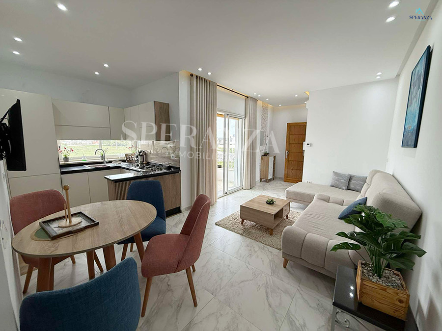 Speranza immobilière Hammamet vous propose à la vente Cet appartement situé à Hammamet nord,au 1ér étage proche de toutes les commodités . La partie jours se compose par un salon lumineux avec terrasse,kitchenette aménagée avec des espaces de rangement, une salle d'eau . Le comportement de nuit se compose par une chambre à coucher.