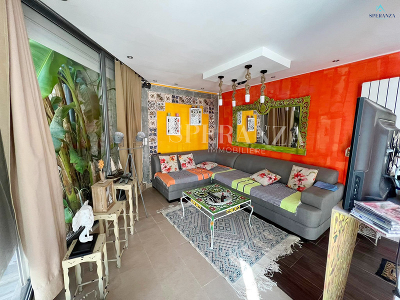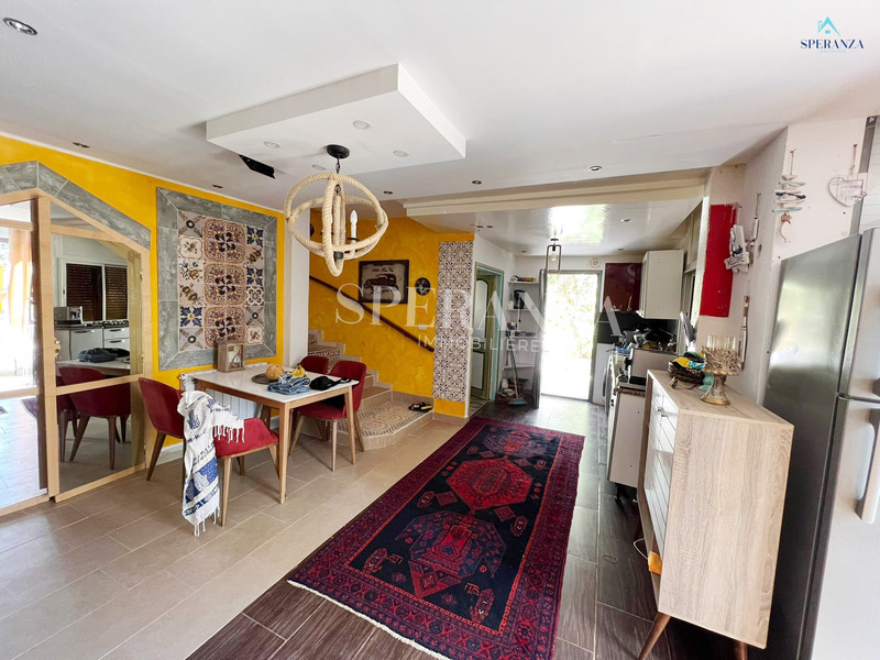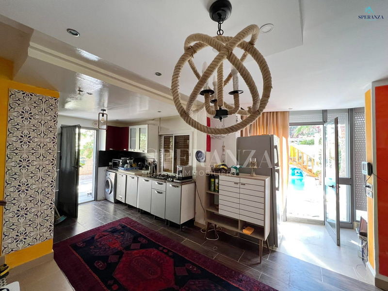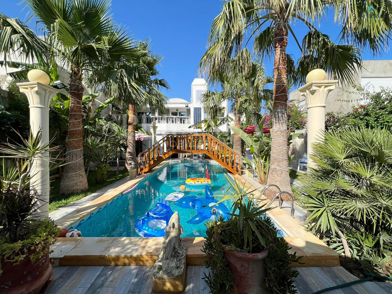 Speranza immobilière Hammamet vous propose à la vente une villa située à Hammamet à coté Miramar dans un quartier calme et résidentiel. L'entrée principale donne sur un jardin spacieux et gazonné avec piscine. cette villa donne sur un salon lumineux et salle à manger. La cuisine agencée et aménagée par les éléments de rangement nécessaires. une chambre à coucher et une salle de bain pour les invités complètent la fête du jour. Un escalier qui nous mène à la partie nuit qui posséde deux chambres à coucher meublées par des dressings et climatiseurs, et une suite parentale bénéficiant d'un dressing .elles se partagent une salle de bain commune. Un abri qui peut contenir deux voitures