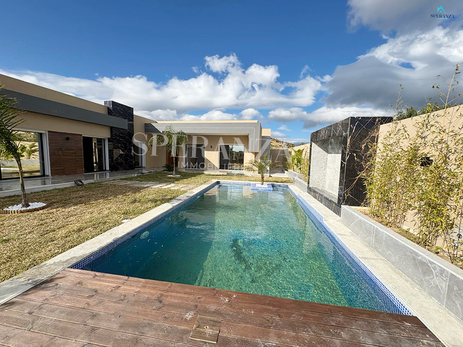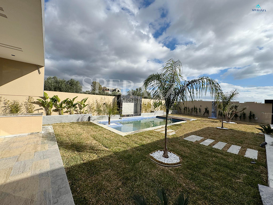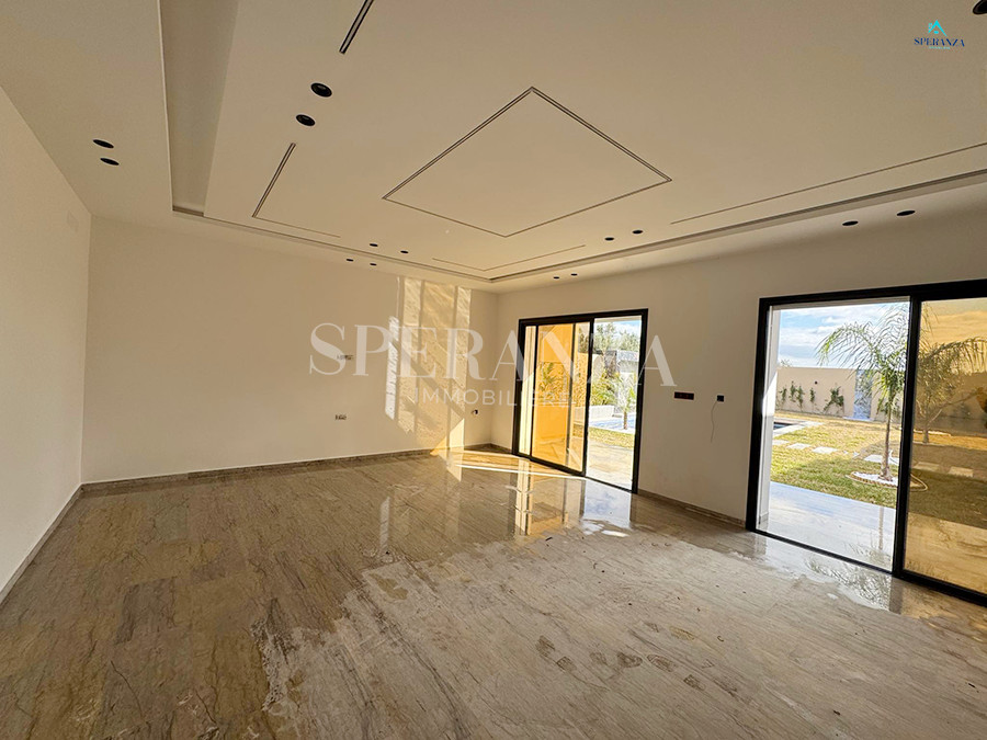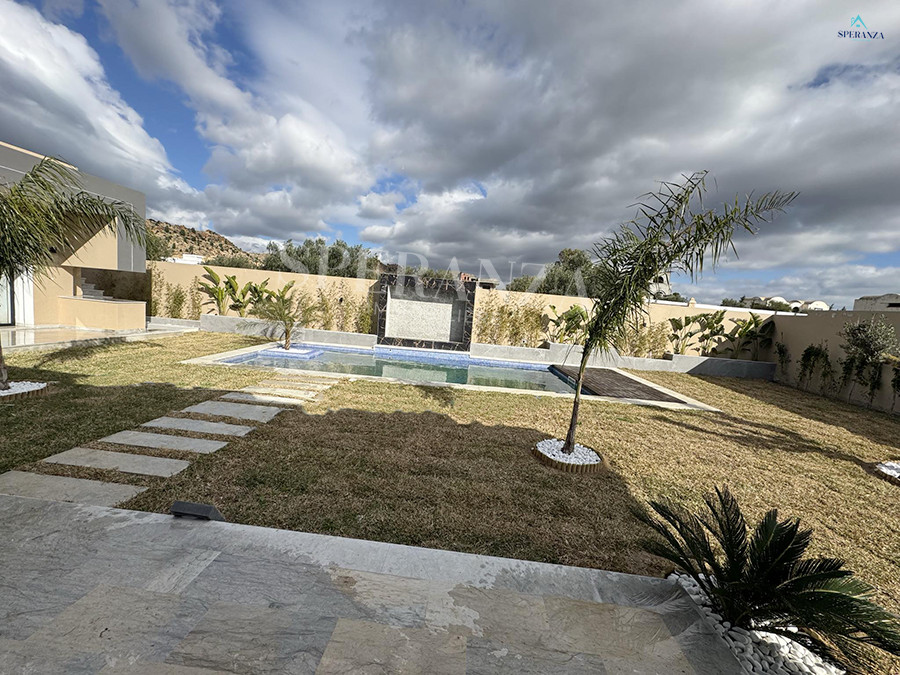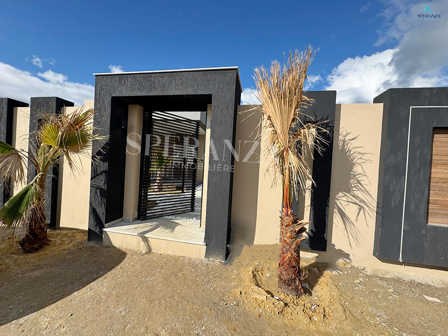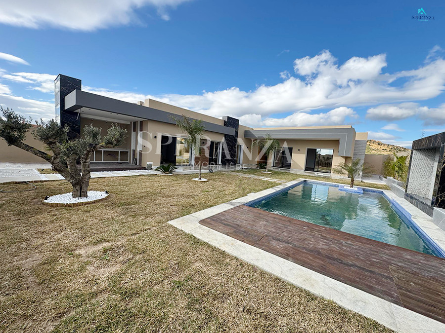 Speranza immobilière vous propose à la vente Cette villa style moderne située à Hammamet sud . L'entrée principale bénéficie d'un jardin gazonné qui offre plusieurs espaces, une piscine. Au rez de chausser se trouve un salon lumineux grâce à ses fenêtres qui offre une vue sur le jardin,une cuisine aménagée avec des espaces de rangement ,une salle d'eau pour les invités , une suite parentale ,deux chambres à coucher. et une salle d'eau .Un garage .