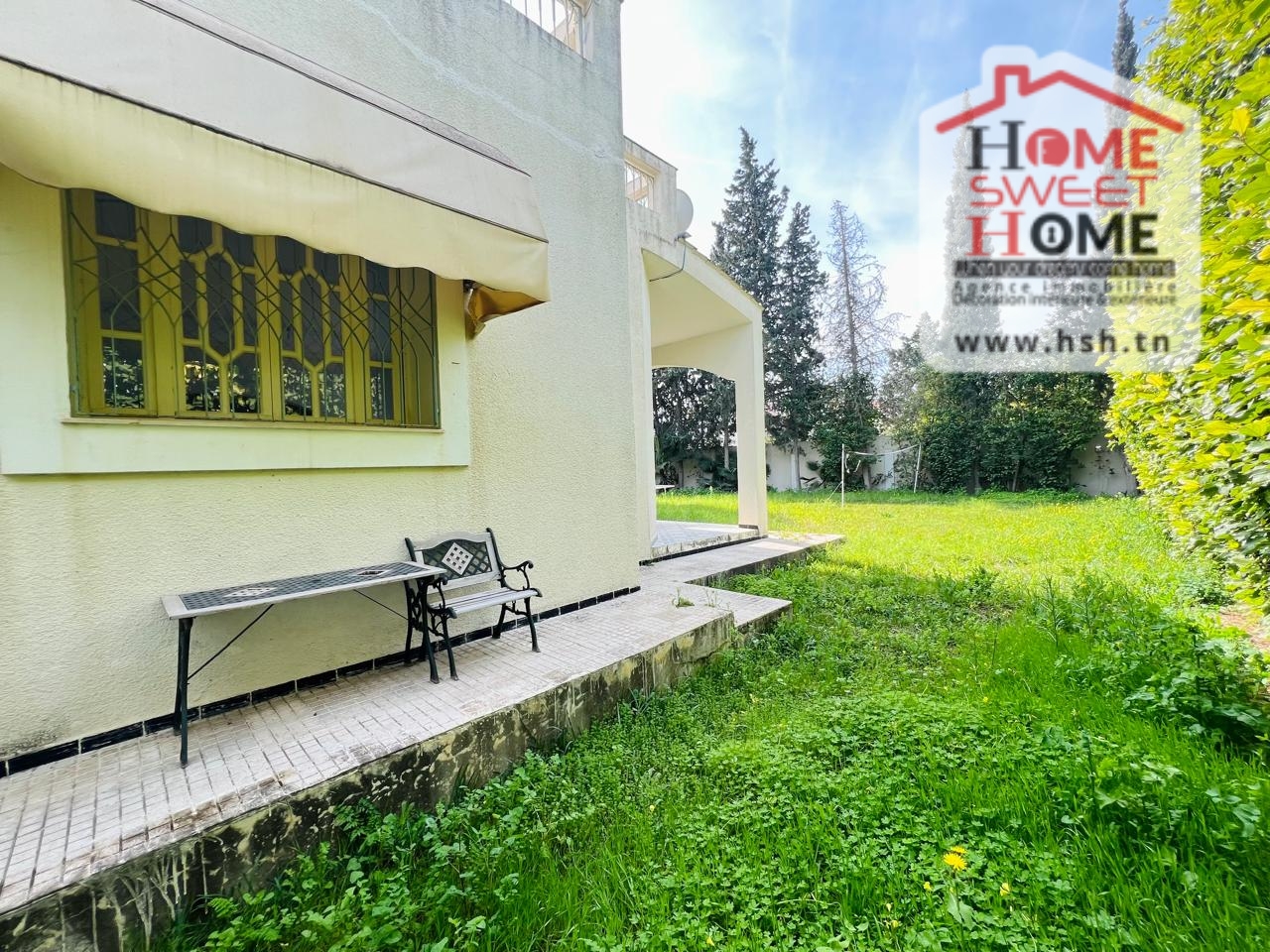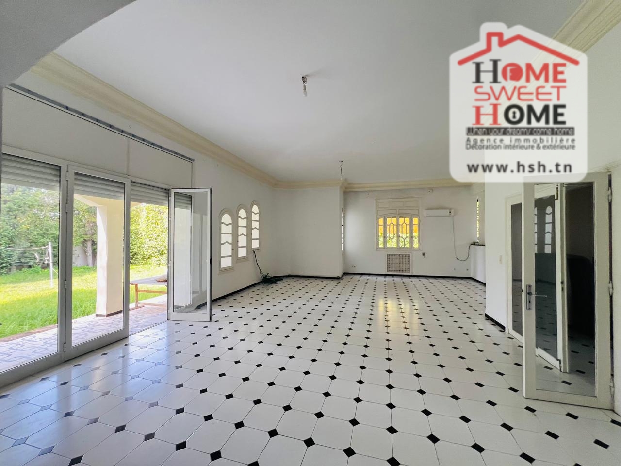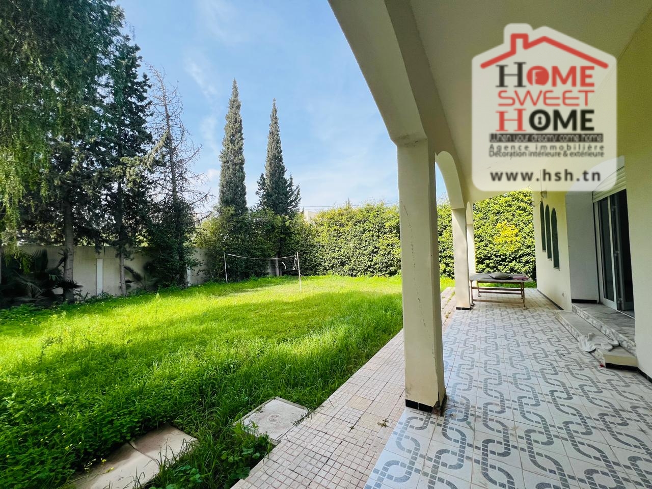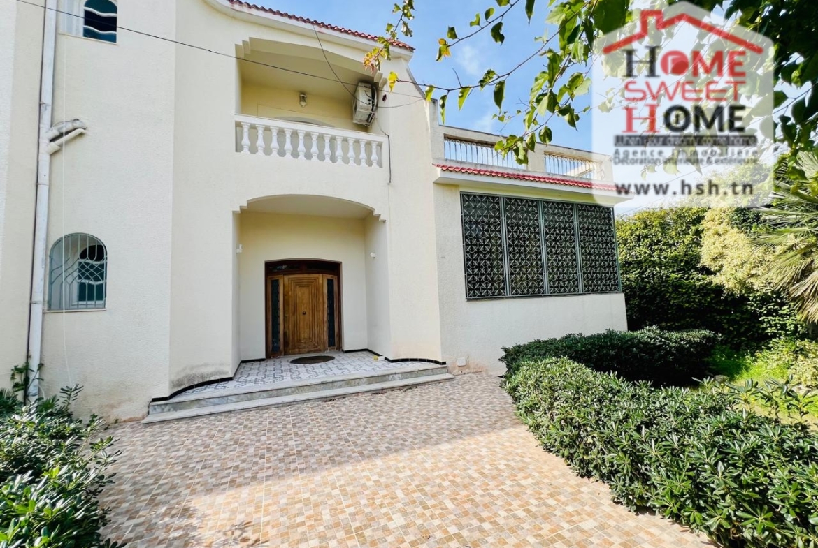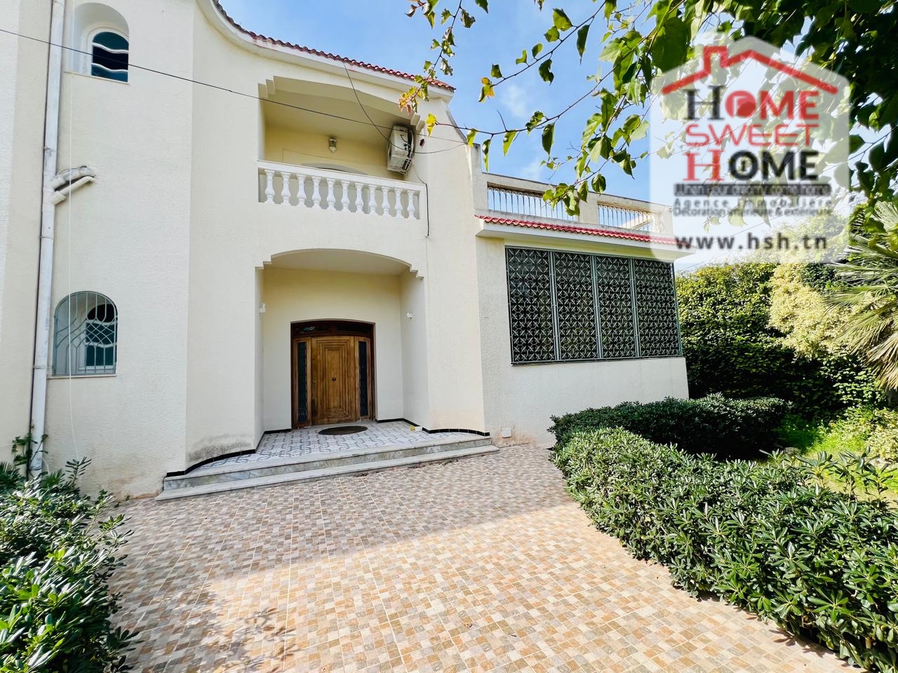 Une luxueuse Villa située dans un quartier prisé des Jardins de l'Aouina. À l'entrée, on découvre un salon lumineux, un séjour, une cuisine équipée, deux chambres et une salle d'eau pour les invités. À l'étage, une suite parentale, cinq chambres avec dressings (dont une avec balcon), une terrasse ainsi qu'une salle de bain. À l'extérieur, un vaste jardin gazonné et un garage.