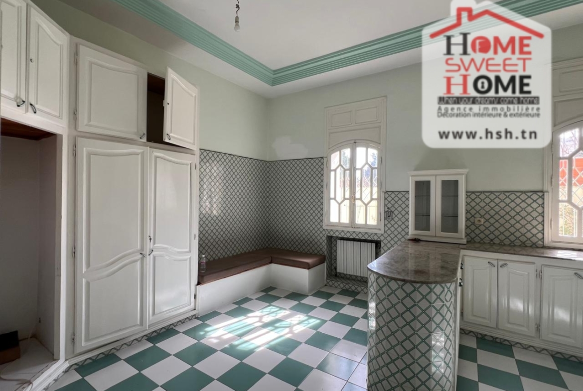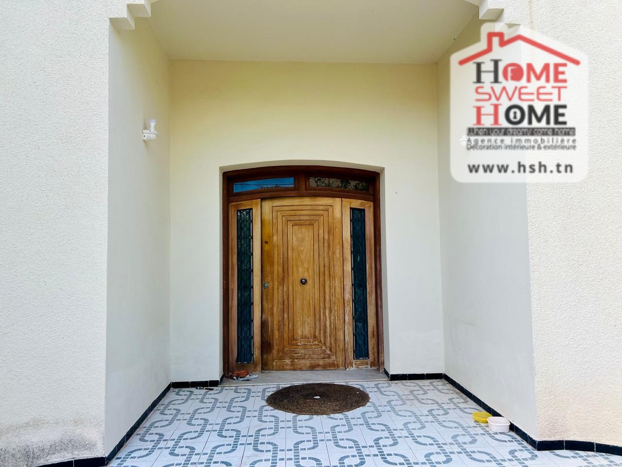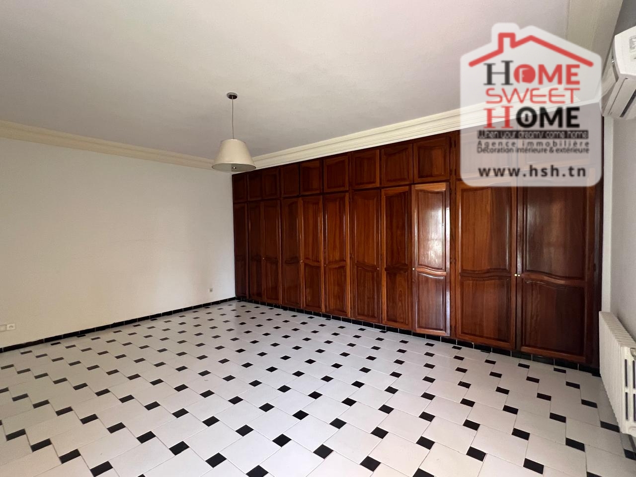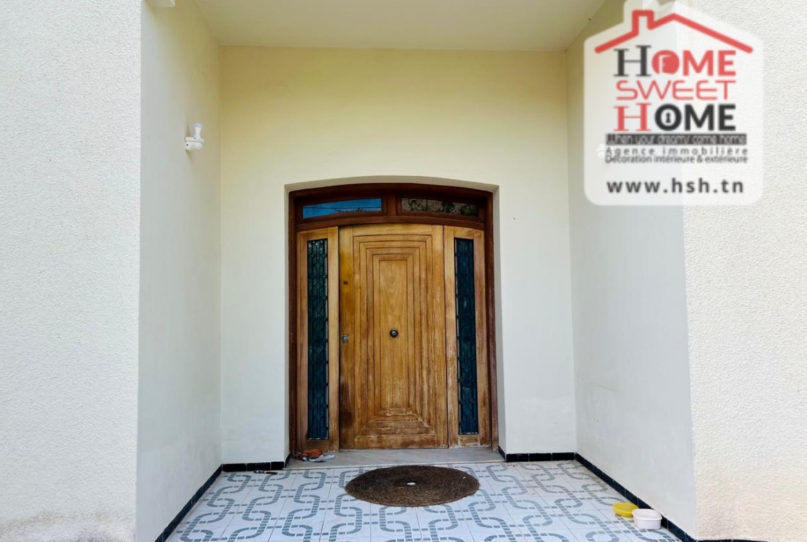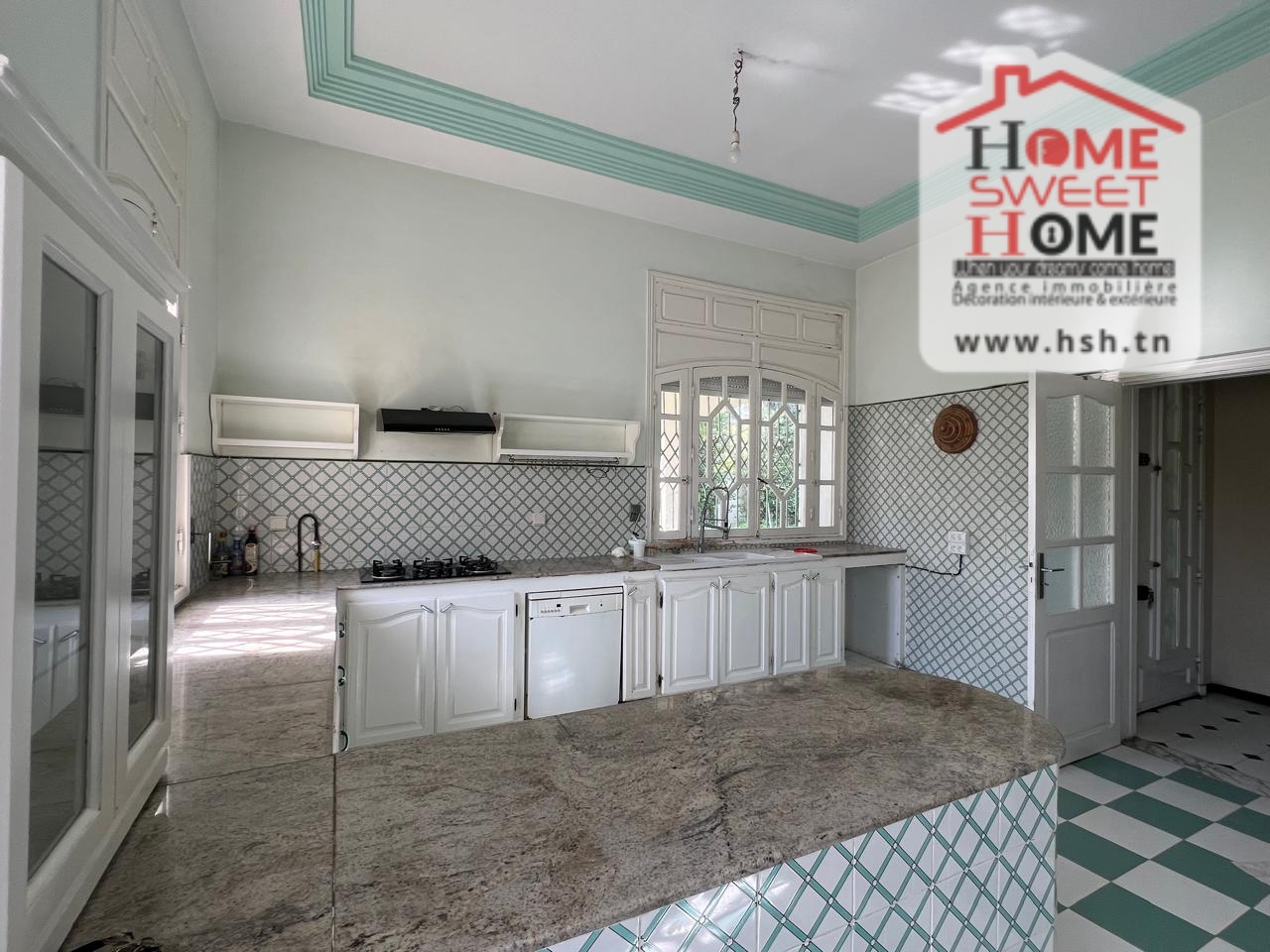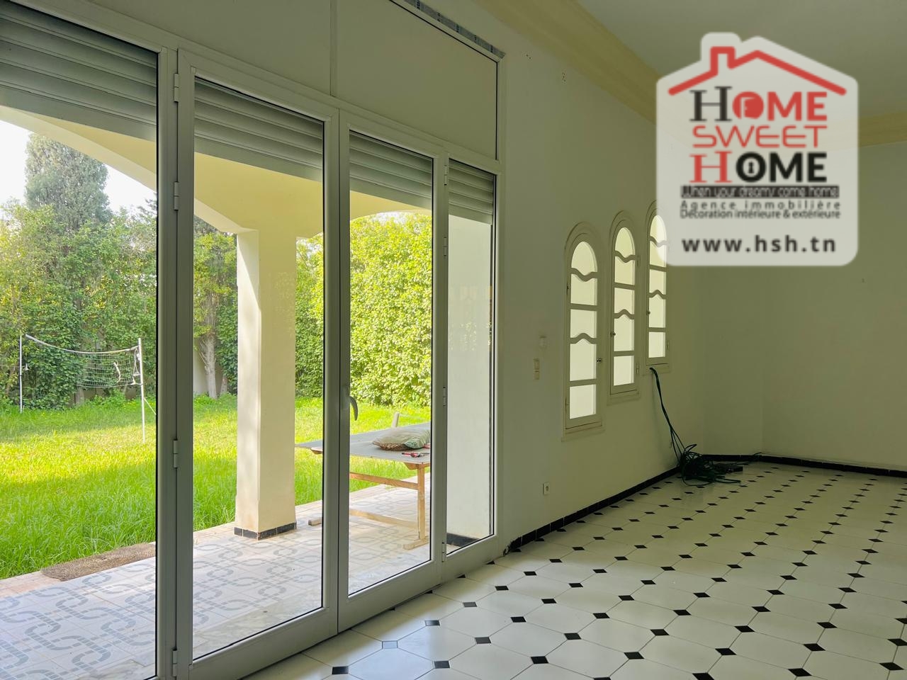 Une luxueuse Villa située dans un quartier prisé des Jardins de l'Aouina. À l'entrée, on découvre un salon lumineux, un séjour, une cuisine équipée, deux chambres et une salle d'eau pour les invités. À l'étage, une suite parentale, cinq chambres avec dressings (dont une avec balcon), une terrasse ainsi qu'une salle de bain. À l'extérieur, un vaste jardin gazonné et un garage.