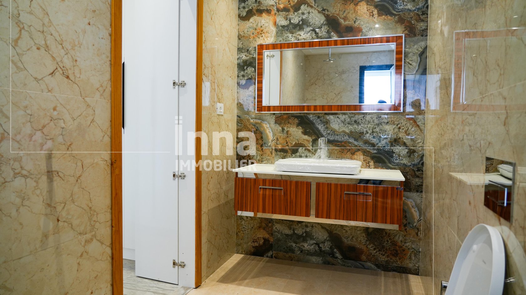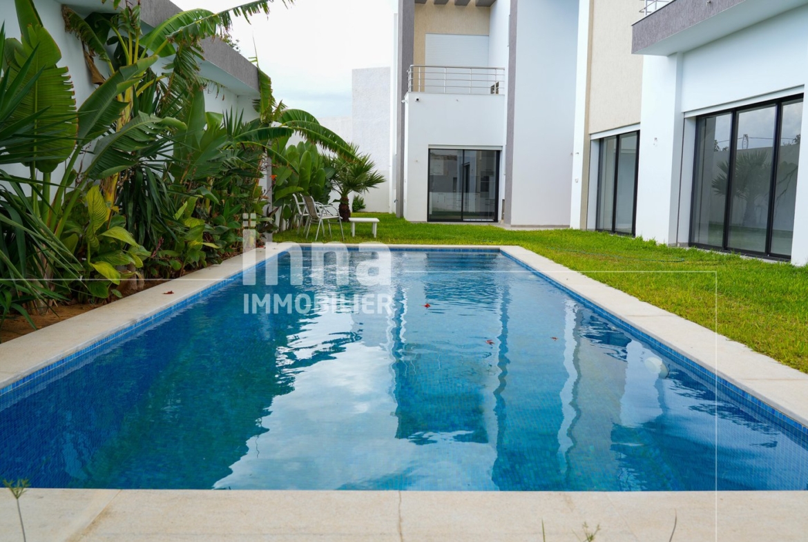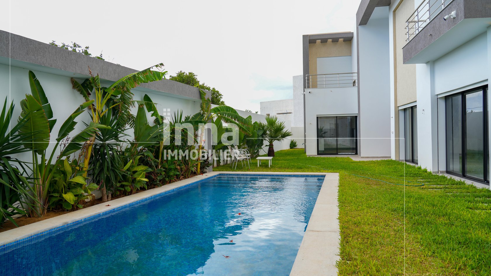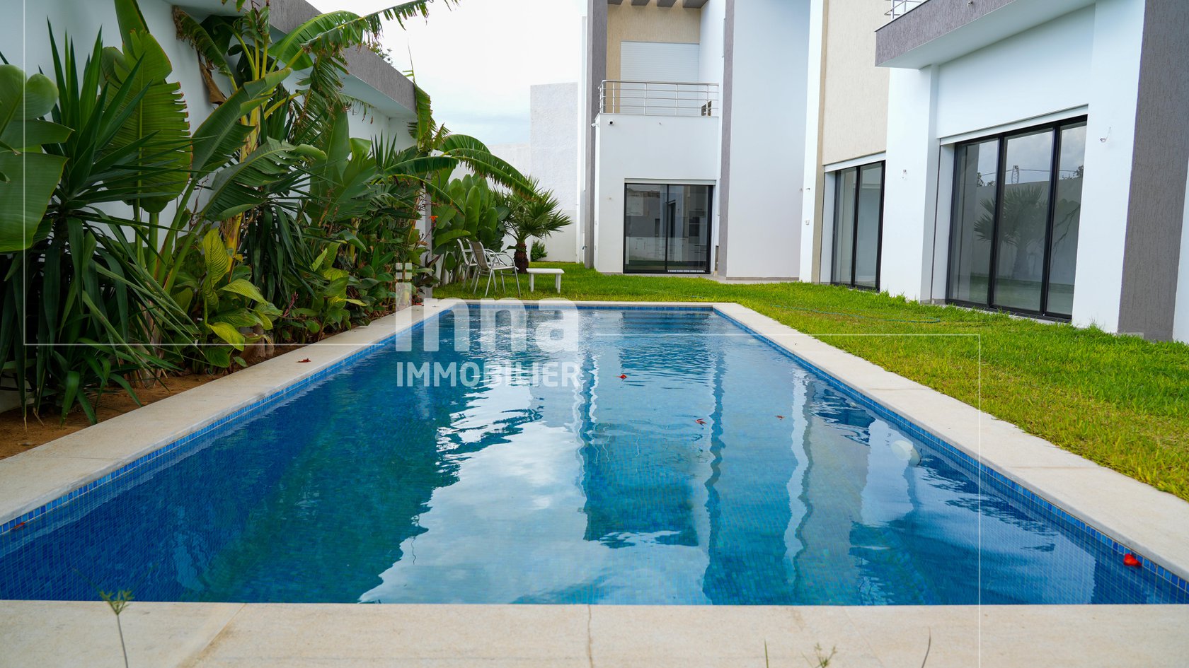 Emplacement : Craxi Hammamet Nord Superficie : 345m² 2 Suites et 2 chambres avec dressing, cuisine équipée et aménagée, piscine, jardin, terrasse, abri voiture Prix : 690MDT en promotion Réf : NA1681
