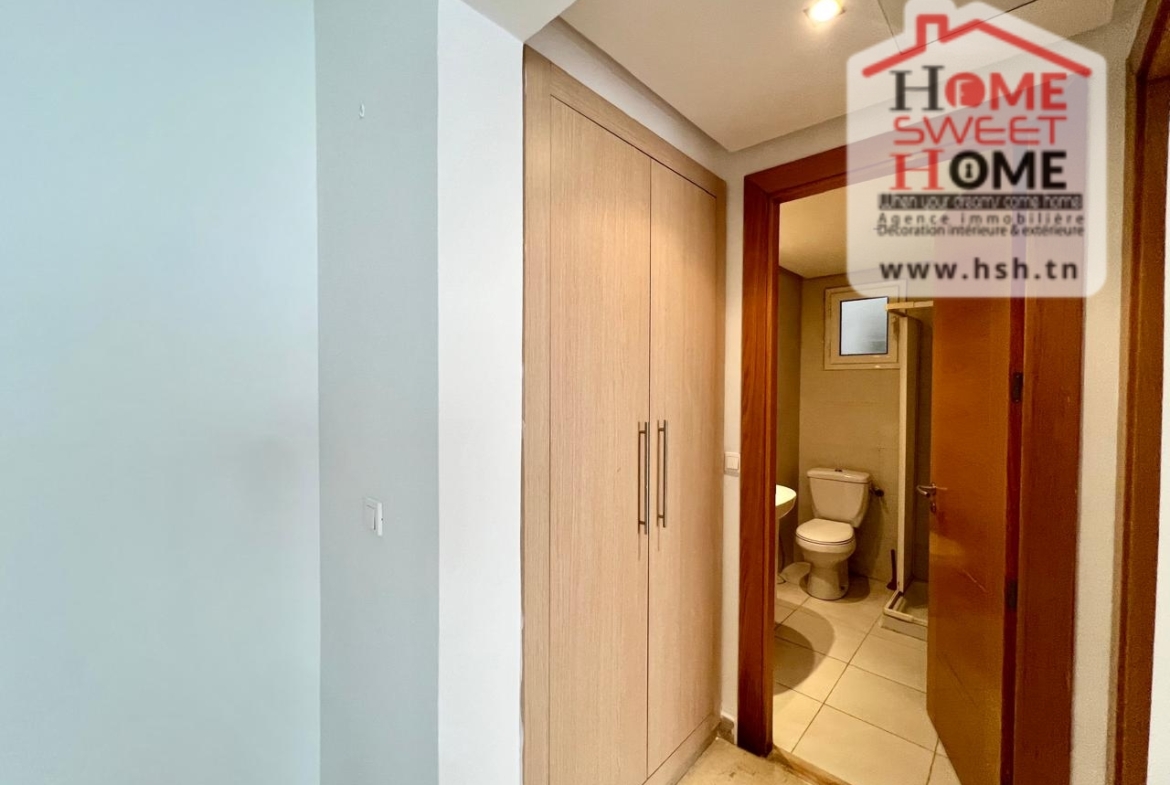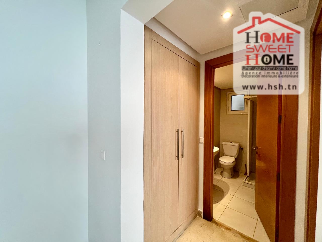 Un Appart haut standing au 1er étage situé à Sidi Daoud, La Marsa. A l’entrée, sur un salon, une cuisine équipée avec séchoir, une chambre à coucher et une salle de bain. A l’extérieur, sur une place de parking sous-sol.