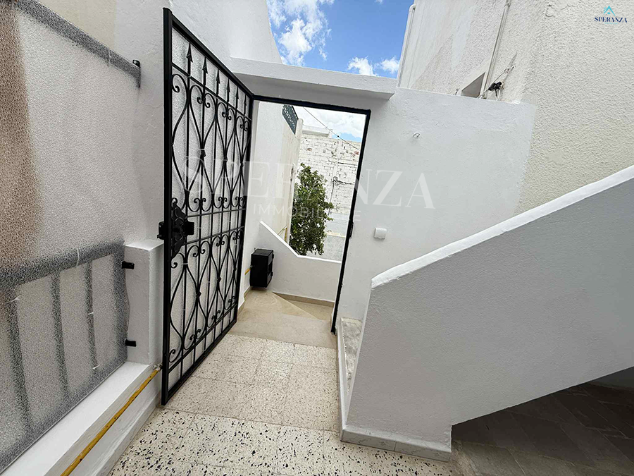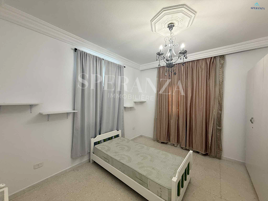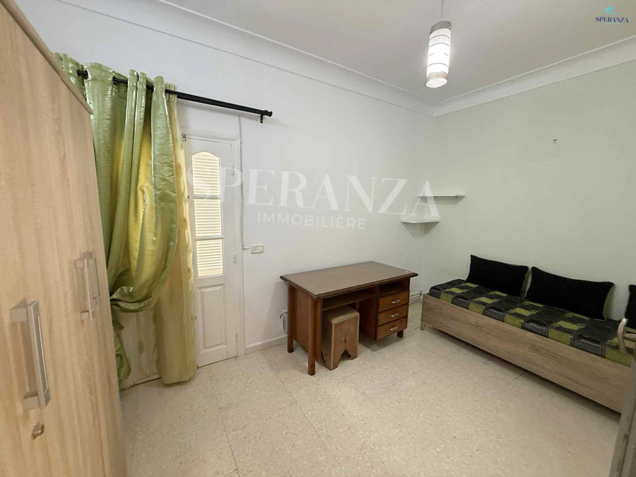 Speranza immobilière Hammamet vous propose à la location annuelle cet appartement au premier étage situé à Hammamet centre dans un quartier calme et securisé .L’entrée principale est composé par un salon lumineux, une cuisine bien équipée est aménagée par les éléments de rangement nécessaire et une salle d’eau. Le compartiment nuit posséde une suite parentale et deux chambres à coucher.