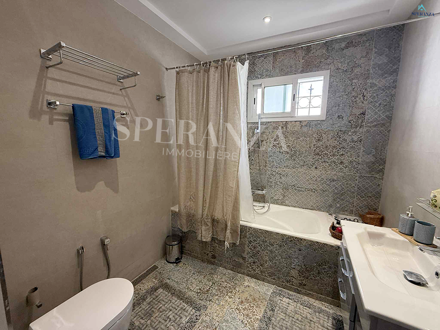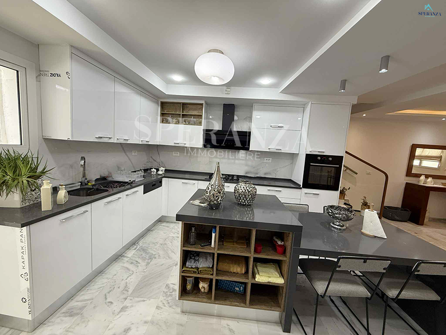 Speranza immobilière Hammamet vous propose à la location cette appartement situé à Hammamet centre dans un endroit calme, avec une entrée collective. A l’extérieure se trouve une petite kitchenette. Le rez-de-chaussée dispose un salon lumineux grâce à ses fenêtres, une cuisine entièrement bien équipée et une salle d’eau pour les invités. Un escalier nous mène au 1ére étage qui possède 2 chambres a coucher munie d’un dressing se partagent une salle d’eau commune. Le 2eme étage dispose une suite parentale et une terrasse.