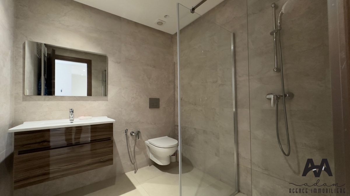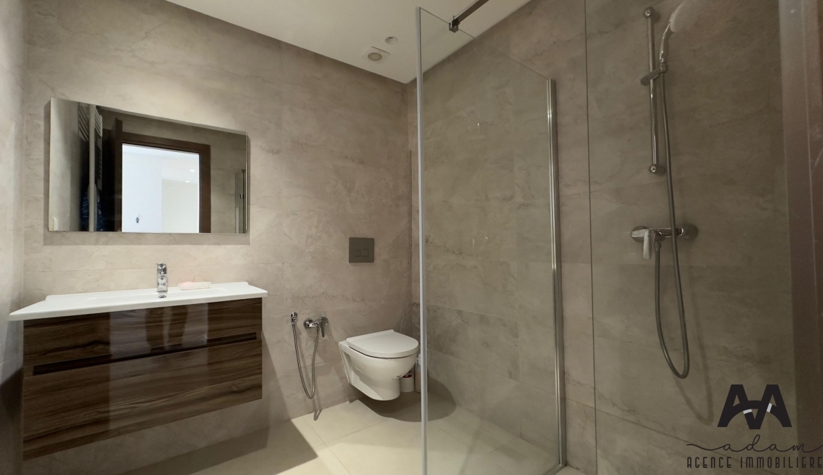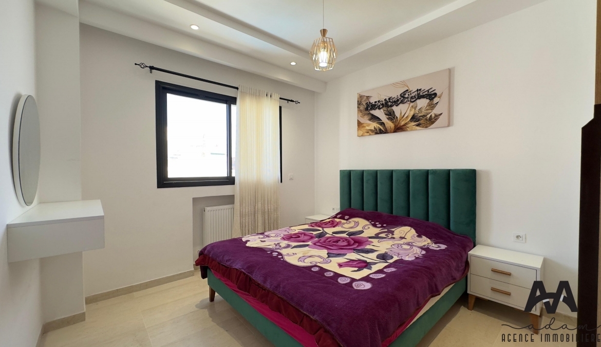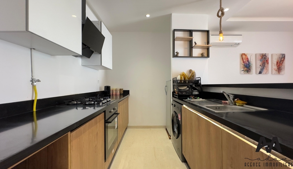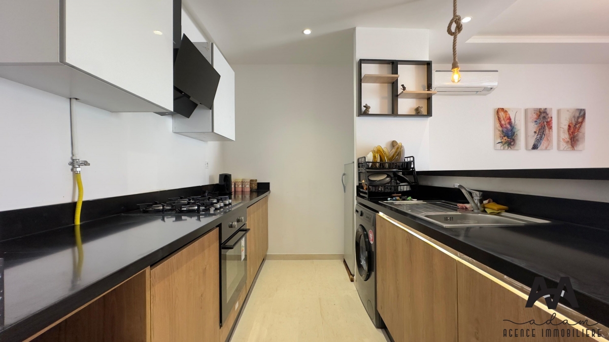 Un appartement s+1 au 5eme étage dans une résidence gardée avec piscine et double ascenseur, Il se compose d’un salon balconnet vue de piscine, chambre parentale avec dressing, kitchenette équipé aménagé (plaque, hotte, four, frigidaire et une machine à laver) et salle de douche .