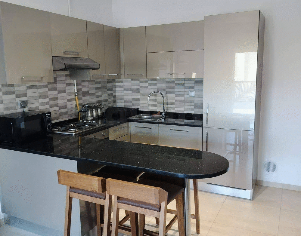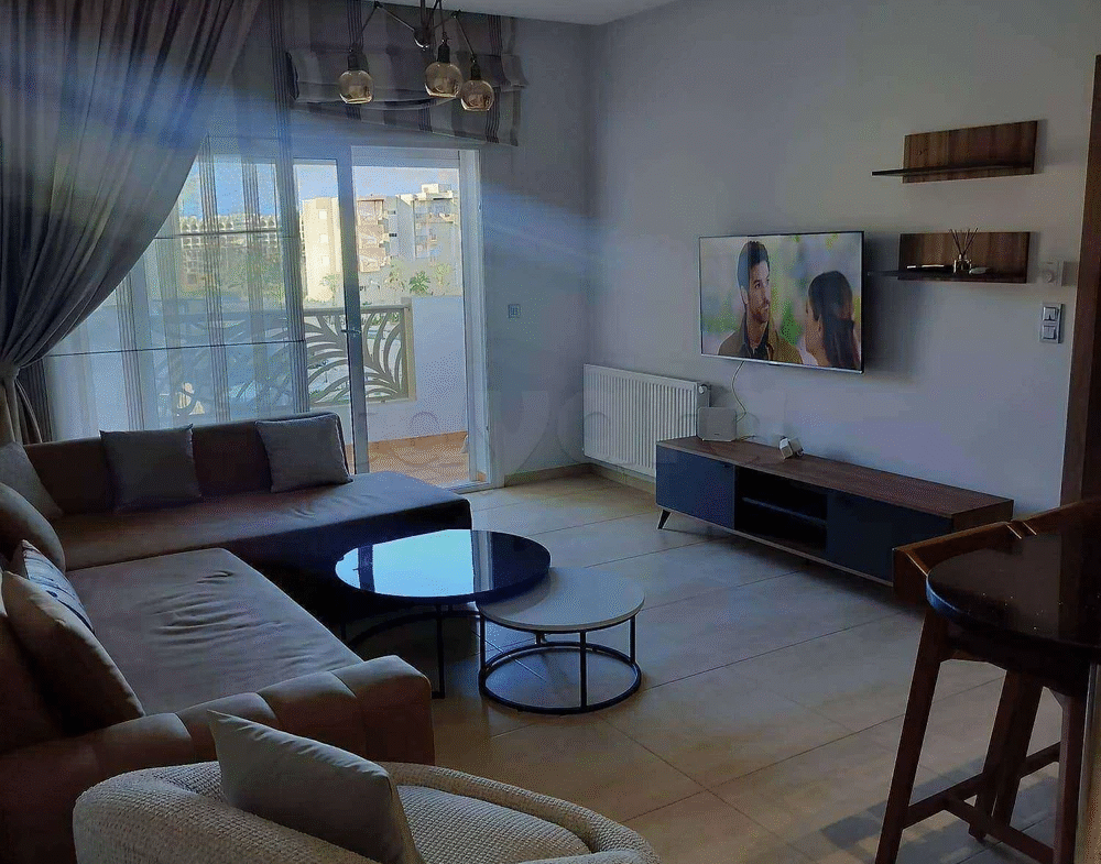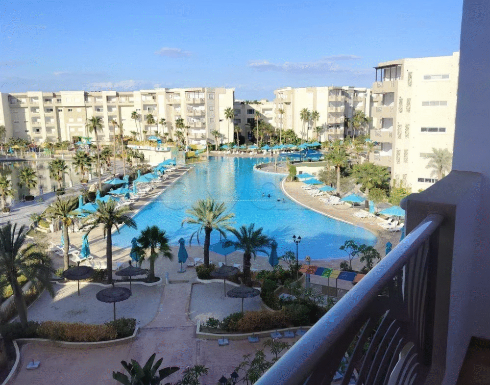 Agence Les Arcades met en location pour la saison universitaire (max mois juin) un magnifique appartement très haut standing de type s+1 vue de piscine ,situé dans une superbe résidence avec 5 piscines dans la deuxième zone touristique de Monastir .